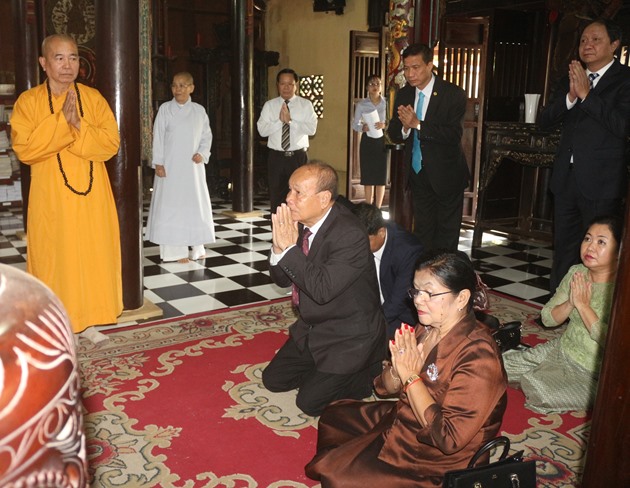 Về phía đoàn Campuchia có: Ông Him Chhem, Bộ Trưởng Cao Cấp kiêm Bộ trưởng Bộ Lễ nghi và Tôn giáo Campuchia; Bà Suos Nara, Cố Vấn Bộ Lễ nghi và Tôn giáo Campuchia; Bà Min Chandyneth, Phó Quốc Vụ khanh Bộ Lễ nghi và Tôn giáo CPC; Ông Chea Nareth, Cố Vấn kiêm Chánh Văn phòng Bộ Lễ nghi và Tôn giáo CPC cùng các vị trong đoàn.