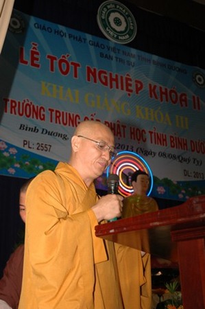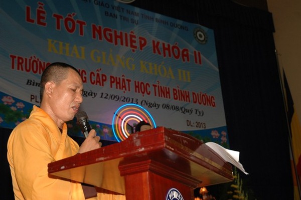 Sau phần niệm Phật cầu gia bị, Thượng tọa Hiệu trưởng Thích Huệ Thông phát biểu khai mạc nhấn mạnh: “Giáo dục là qúa trình được tổ chức có ý thức, hướng tới mục đích khơi gợi hoặc biến đổi nhận thức, năng lực, tình cảm, thái độ của người dạy và người học theo hướng tích cực, nghĩa là góp phần hoàn thiện nhân cách người học bằng những tác động có ý thức .