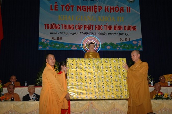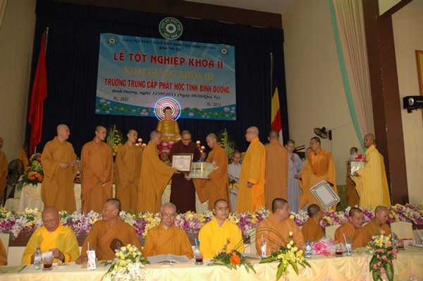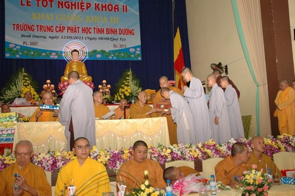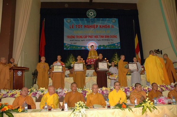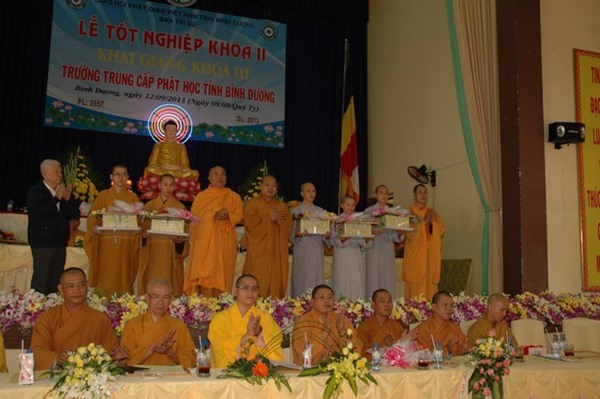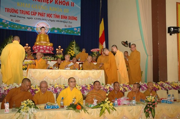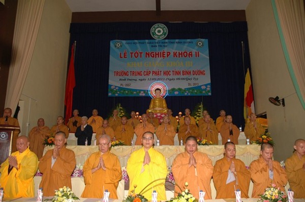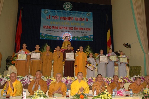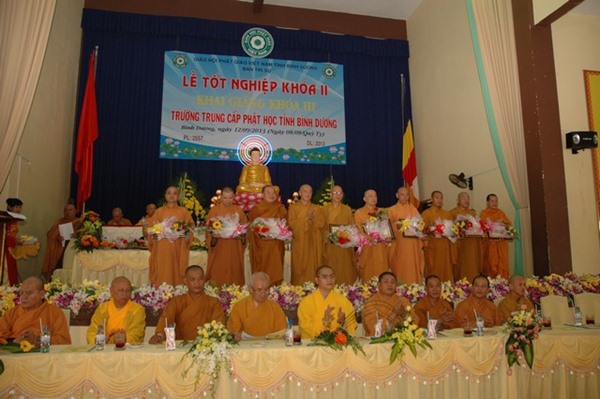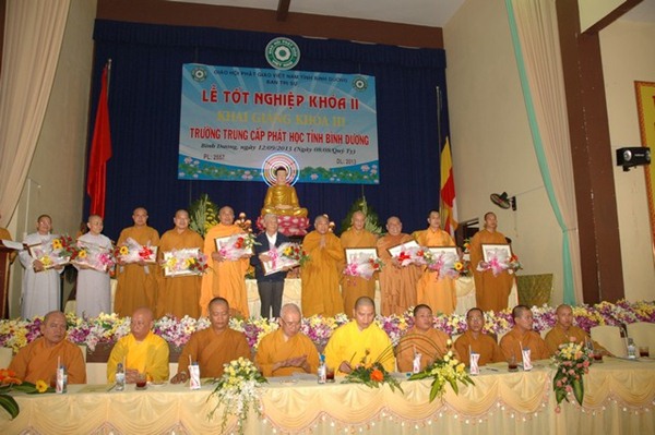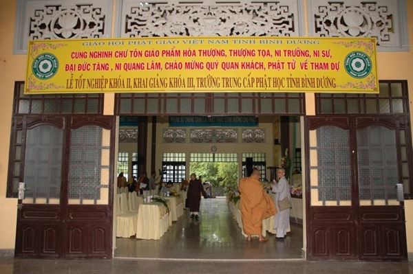 Trường Trung cấp Phật học tỉnh Bình Dương được thành lập năm 1995. Khai giảng khóa I vào ngày 23 tháng 09 năm 1995, Kết thúc khóa học và tốt nghiệp ngày 08 tháng 09 năm 2000.