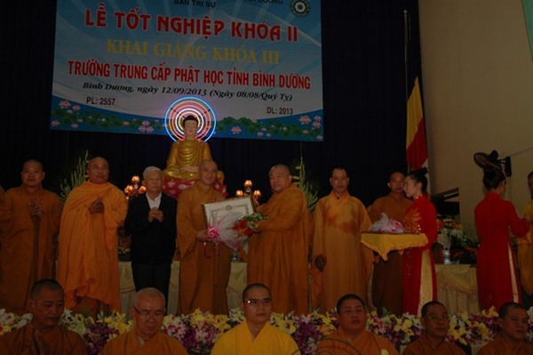 Quang lâm chứng minh có sự hiện diện: Hòa Thượng: Thích Giác Toàn – Phó chủ tịch HDTS, Thượng Tọa: Thích Thiện Thống – Phó văn phòng II TW.GHPGVN, Thượng Tọa: Thích Huệ Thông – TBTS.GHPGVN Tỉnh Bình Dương – Hiệu trưởng trường trung cấp Phật học.