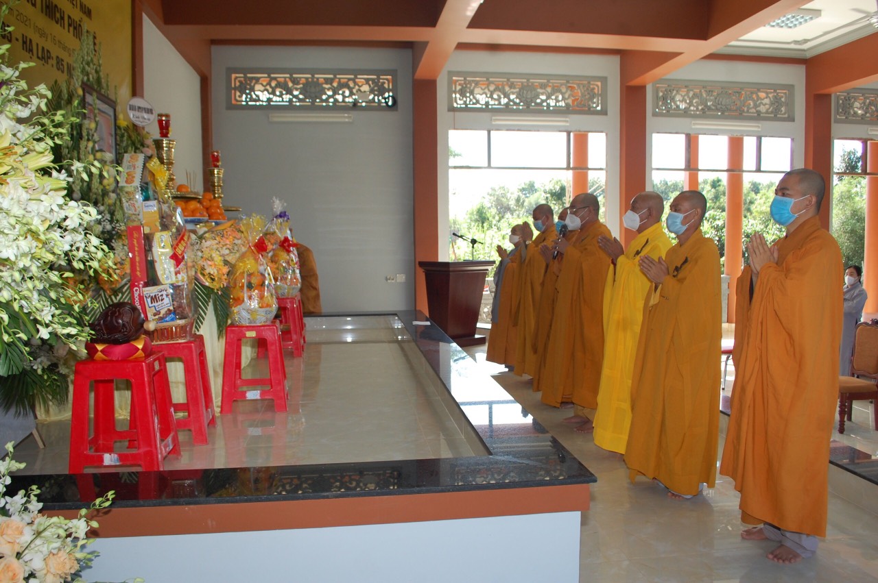Sau khi cung tuyên tiểu sử và công hạnh của Đức pháp chủ xong, toàn thể tăng ni, Phật tử khởi thân đối trước kim ảnh đồng âm trì niệm kinh chú thành tâm dâng lên cúng dường cố giác linh trưởng lão Hòa thượng và nguyện noi theo đức hạnh từ bi, hỉ xả của ngài, sống thanh bần, ung dung tự tại. Tấm gương ấy trải qua 105 năm hiện diện ở cõi Ta bà, với 85 hạ lạp, trên ngôi vị Pháp chủ Giáo hội Phật giáo Việt Nam, Ngài đã trọn đời hiến dâng cho lý tưởng hoằng pháp lợi sanh. Công đức của Ngài đã góp phần to lớn vào sự nghiệp làm sáng danh đạo Phật và dân tộc Việt Nam.