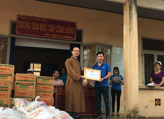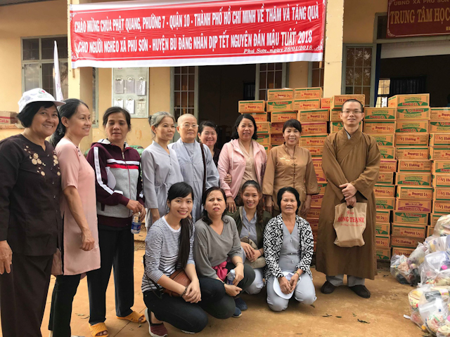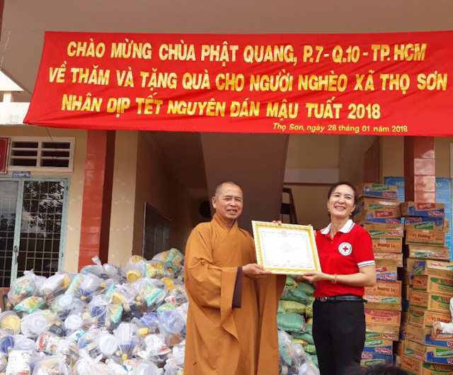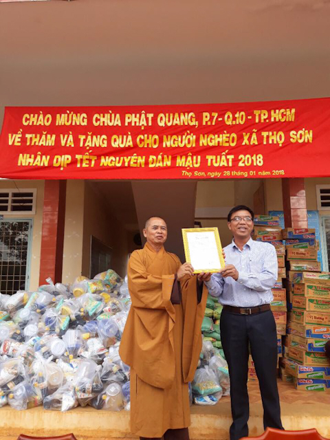 Đoàn do ĐĐ.Thích Quảng Trí trưởng Ban TTXH Phật giáo Q.10 làm trưởng, đi cùng có Chư tôn đức chùa Thành Sơn và đông đảo Phật tử đạo tràng chùa Phật Quang tháp tùng. Đoàn đã đến xã Thọ Sơn phát 200 phần và xã Phú Sơn phát 250, mỗi phần quà gồm (Gạo, mì, thực phẩm thiết yếu và tịnh tài lộc Tết).