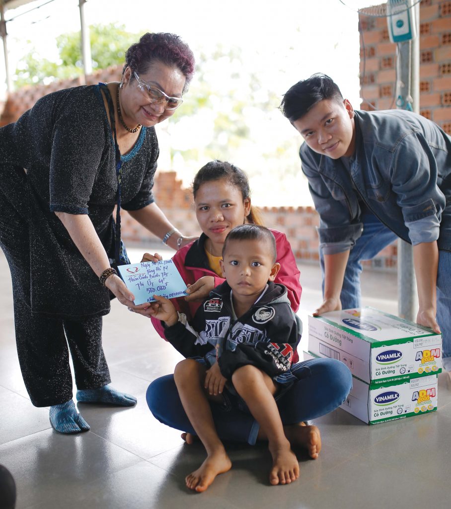 Ngoài ra đoàn còn dành tặng 6 phần quà , mỗi phần thêm 500 ngàn đồng tiền mặt, cho hộ gia đình có hoàn cảnh đặc biệt khó khăn . Dịp này, 2 mạnh thường quân trong đoàn cũng đã phát tâm ủng hộ gia đình em Thảo ( mẹ bị bệnh Tâm Thần không có khả năng lao động), mỗi tháng một phần quà trị giá 500.000 Đ . Tổng kính phí cho chuyến công tác từ thiện lần này lên hơn 65 triệu đồng .