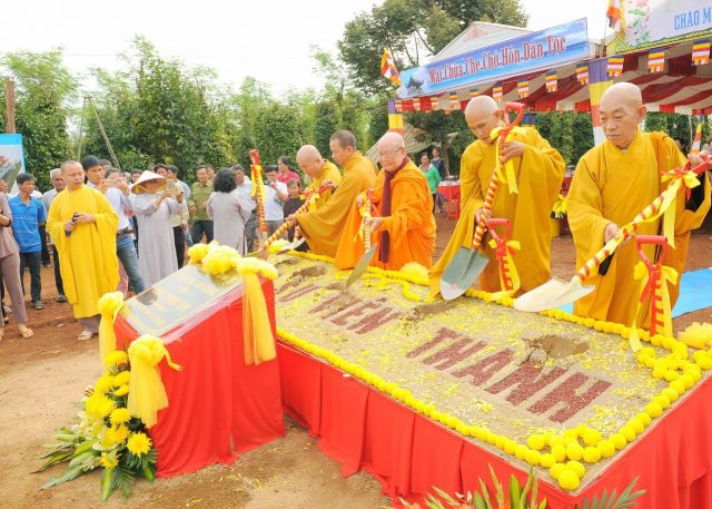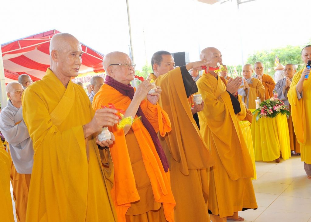 Tại buổi lễ, chư tôn đức chứng minh, quý quan khách, chủ đầu tư… đã thực hiện các nghi thức tâm linh của lễ đặt đá và mong rằng công trình xây dựng ngôi Tam Bảo sẽ thành tựu viên mãn .