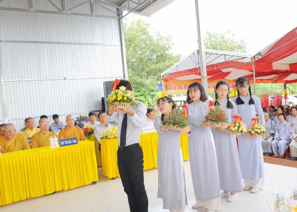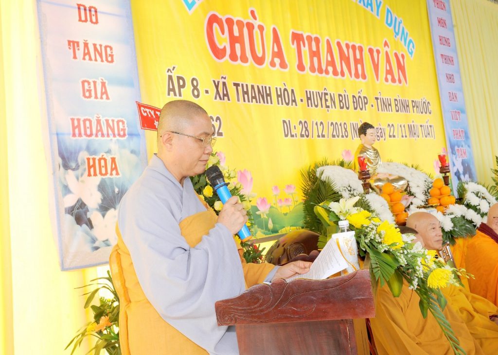 Tại buổi lễ, Ni Sư TN. Chúc Tường đọc diễn văn khai mạc. Theo đó, được sự cho phép của các ngành chức năng và sự đồng thuận của BTS GHPGVN tỉnh, Phật tử Trần Văn Thọ Pd Giác Phước và Nguyễn Thị Tường Pd Chúc Thuý đã phát tâm mua phần đất để hiến cúng xây dựng ngôi chùa, với diện tích 6000m2 , Đây là công trình văn hóa tâm linh phục vụ nhu cầu tín ngưỡng của đồng bào Phật tử, góp phần xây dựng quê hương xứ sở.