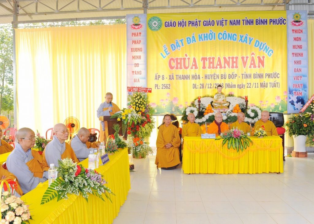 Sáng nay ngày 28/12/2018, chùa Thanh Vân toạ lạc tại ấp 8, xã Thanh Hoà, huyện Bù đốp. Buổi lễ đặt đá được diễn ra với sự tham dự của chư tôn thiền đức tăng ni trong và ngoài tỉnh cùng toàn thể quý phật tử gần xa.