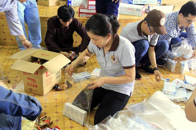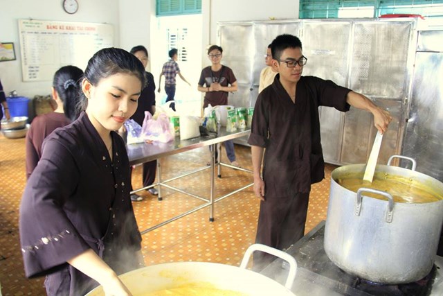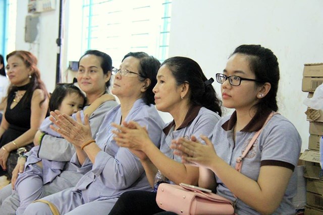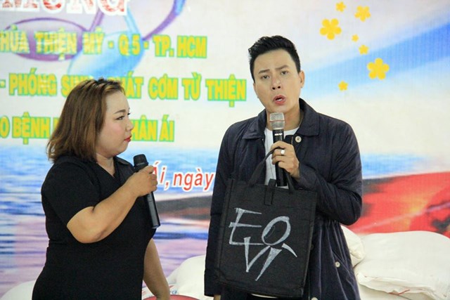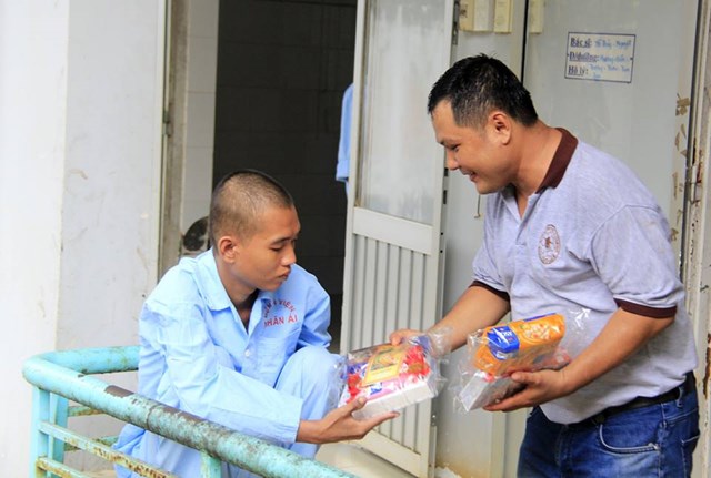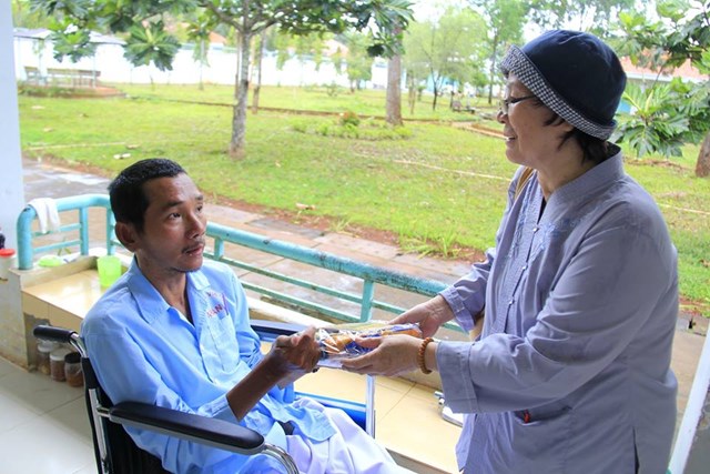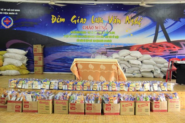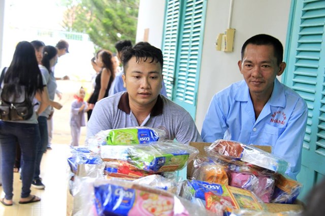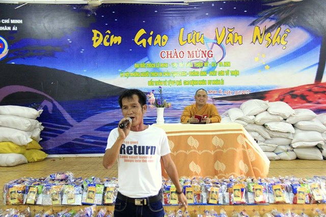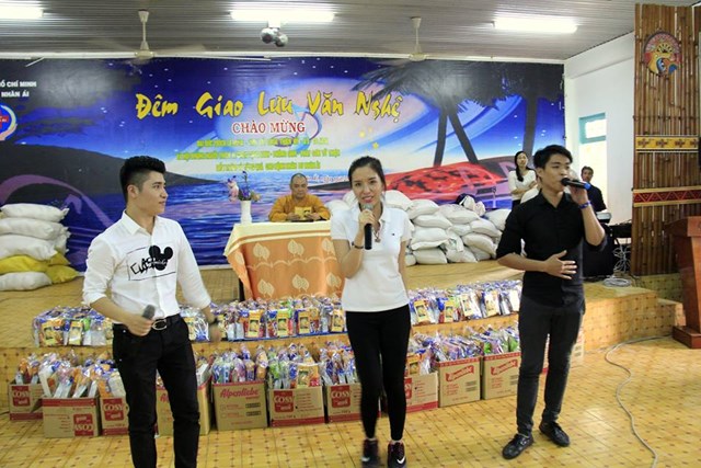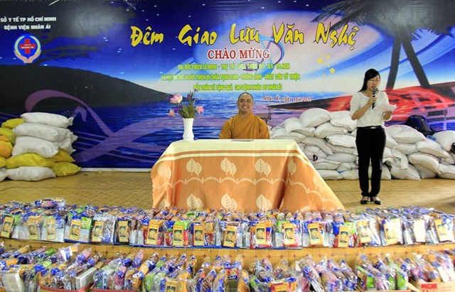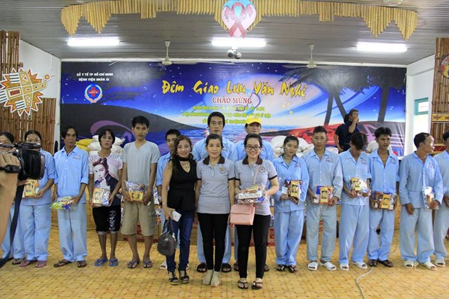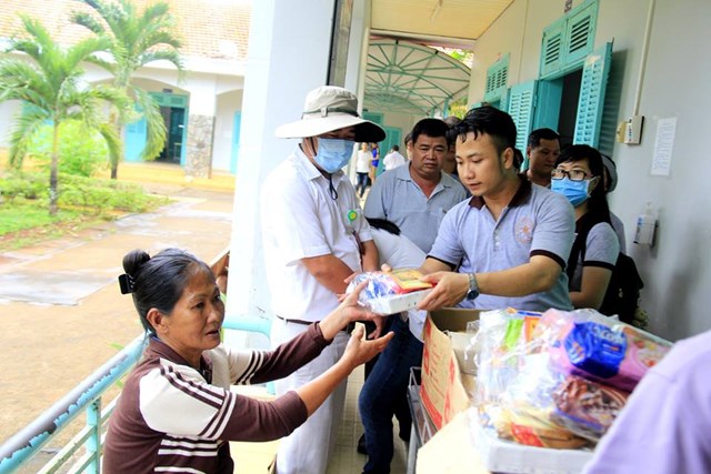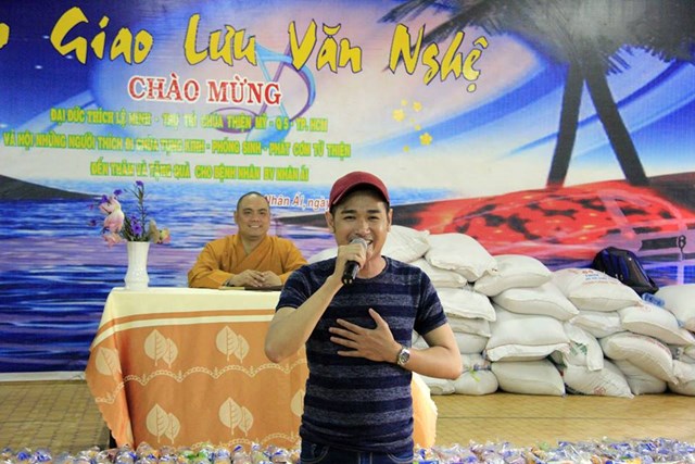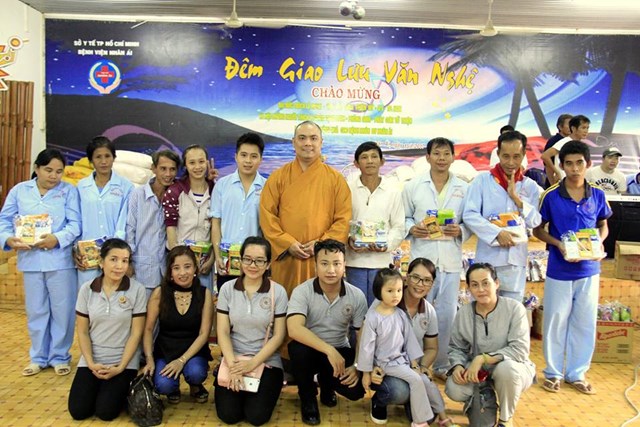 Tại đây, đoàn đã phát gần 400 phần quà trị giá 100 triệu đồng cho các bệnh nhân bị nhiễm HIV/AIDS giai đoạn cuối hiện đang điều trị tại Bệnh viện Nhân Ái, tỉnh Bình Phước. Mỗi phần quà bao gồm: gạo, bánh, sữa, lì-xì tịnh tài… Những phần quà này sở dĩ có được là kết quả của quá trình hùn phước t các nhà hảo tâm, các mạnh thường quân, Phật tử khắp nơi trên trang mạng xã hội Facebook.