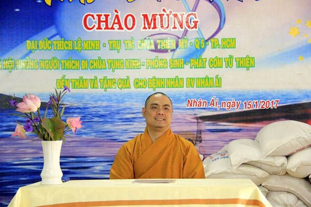 Không chỉ tặng quà cho các bệnh nhân, đoàn còn có các ca sĩ Phật tử tham dự, giao lưu văn nghệ với bệnh nhân. Thiết thực nhất là thời pháp thoại của ĐĐ.Thích Lệ Minh (trụ trì chùa Thiện Mỹ) với chủ đề “AN VỚI CHỖ MÌNH Ở – VUI VỚI VIỆC MÌNH LÀM”. Mục đích của bài pháp này nhằm để bày tỏ ước mong các bệnh nhân sớm vượt qua được nỗi đau bệnh tật, vui sống, thông qua việc quán chiếu ” Hiểu và Thương” trên tinh thần Phật dạy.