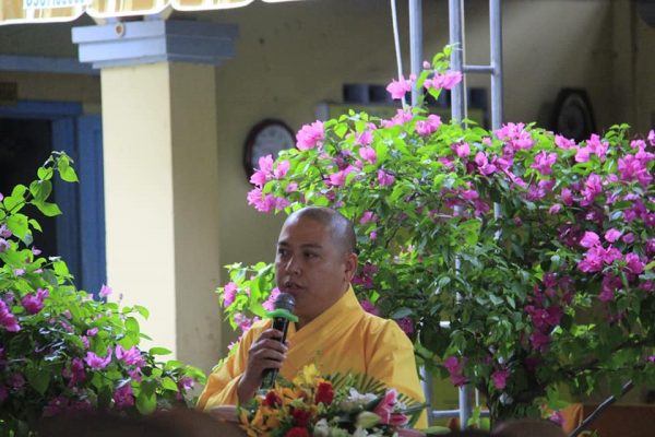 Bắt đầu buổi học, ĐĐ. Thích Quảng Cao – Trưởng Ban từ thiện xã hội Phật giáo tỉnh dẫn chương trình, ổn định đạo tràng, sau nghi thức giới thiệu, HT. Thích Minh Trí thay mặt Ban tổ chức Phát biểu và tặng hoa chào mừng đến HT. Thích Minh Thông. Cung thỉnh Hòa thượng thuyết giảng.
