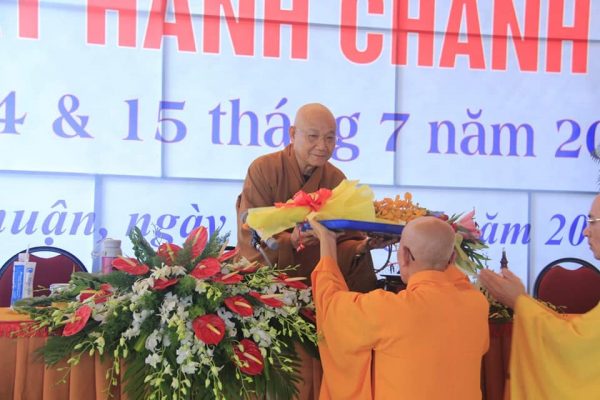 Sau gần 3 giờ chia sẻ về Giới luật hội chúng lắng nghe rất trang nghiêm và thanh tịnh. Kết thúc buổi giảng, thay mặt ban tổ chức HT. Thích Minh Nhật cung thỉnh HT. Thích Minh Thông an tọa để Chứng minh lễ Bế mạc Khóa sinh hoạt Hành chánh Giáo Hội năm 2018 của Phật giáo tỉnh Bình Thuận.