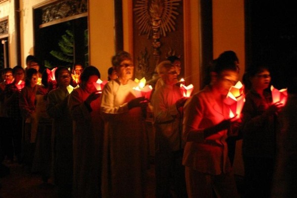 Buổi cầu nguyện được diễn ra trong sự trang nghiêm và thấm tình đạo vị, mang đầy ý nghĩa của tình thương giữa người con Phật khi trước thảm cảnh của con người với nhau.