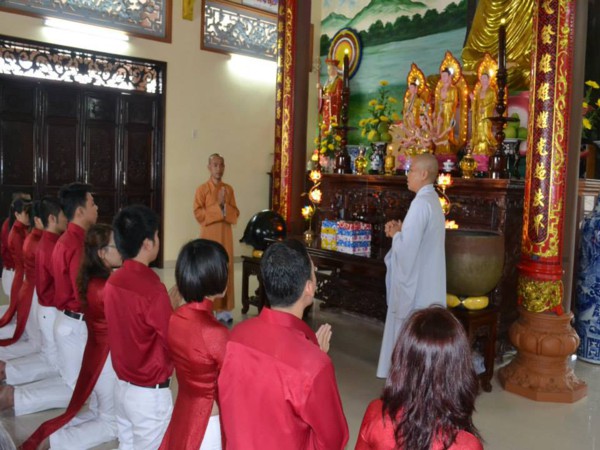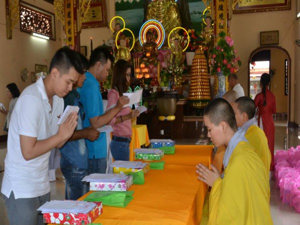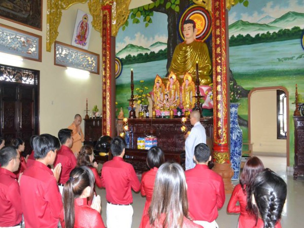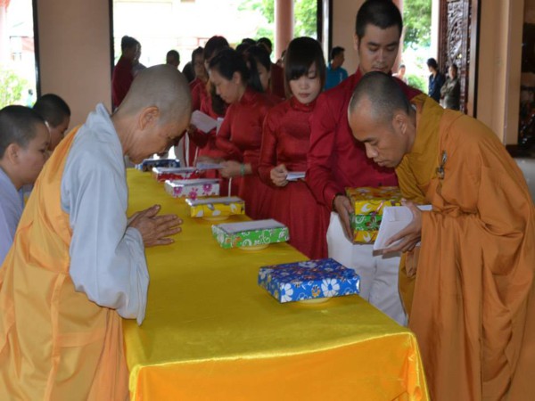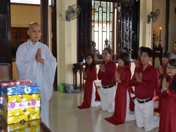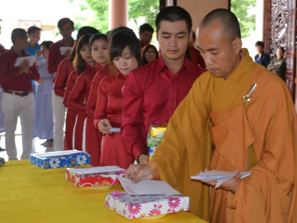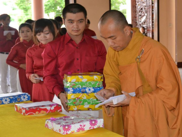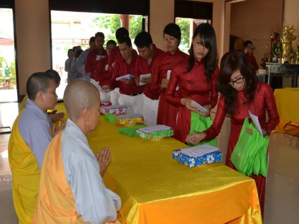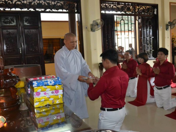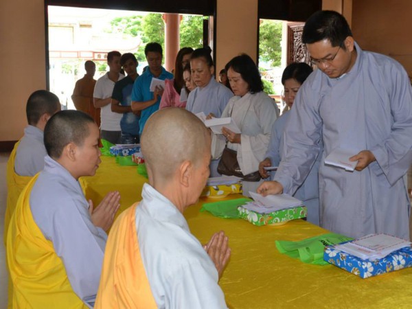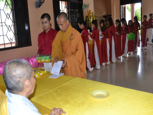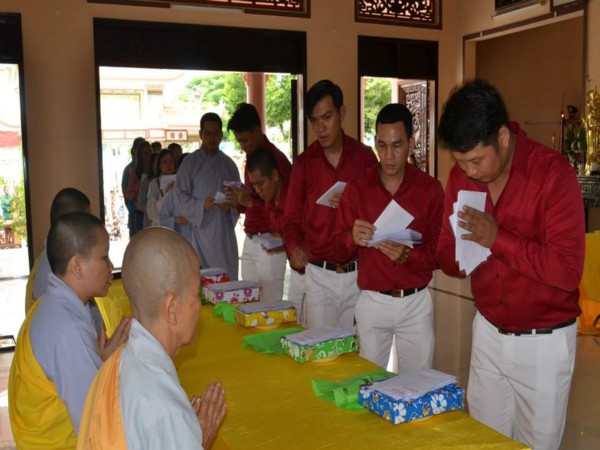 Khoác trên mình bộ trang phục mới, cũng là để thể hiện sự thành kính, trang nghiêm đối trước chư Tôn Đức Tăng Ni, các thành viên trong Hội Khuyến Học Cội Nguồn đã dâng lên Chư tôn đức Tăng Ni những phẩm vật cúng dàng hết sức thiết thực và có ý nghĩa.