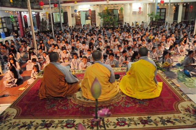 Sau pháp thoại các khóa sinh lại tiếp tục thời khóa tu học, tụng kinh Vu Lan, tĩnh tâm, niệm Phật và kết nối tình thân nhân ngày Tết đoan ngọ 5 tháng 5 Quý Tỵ.