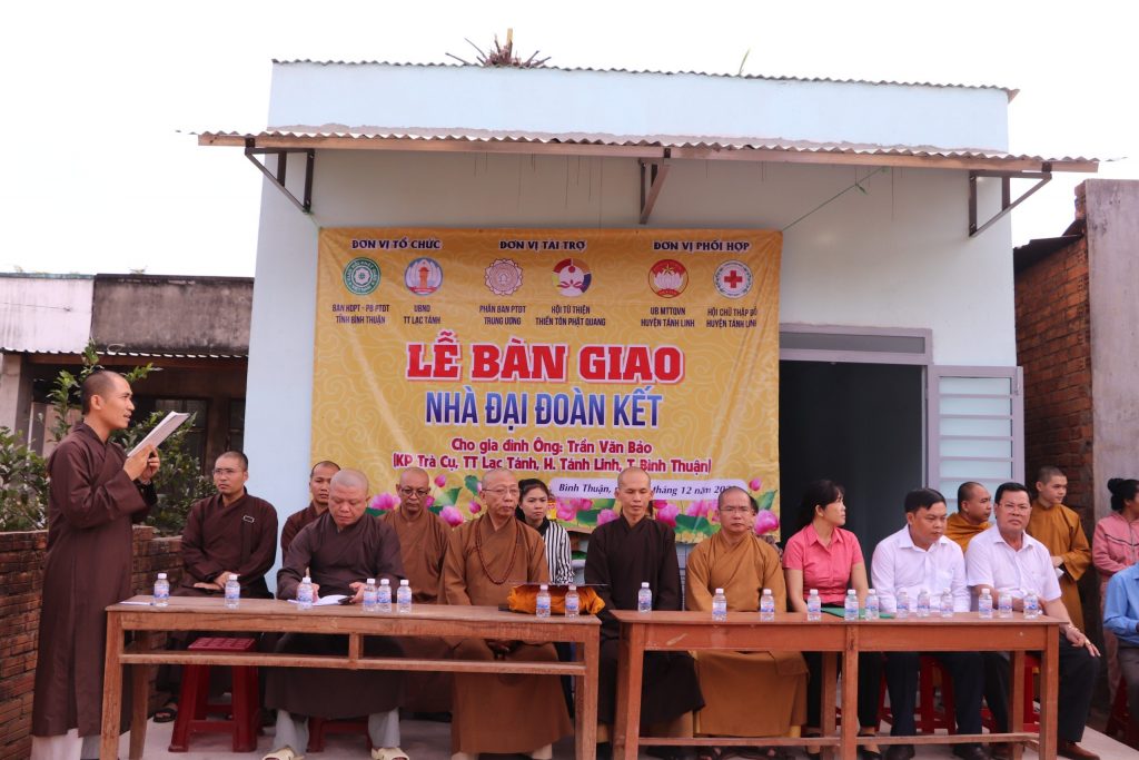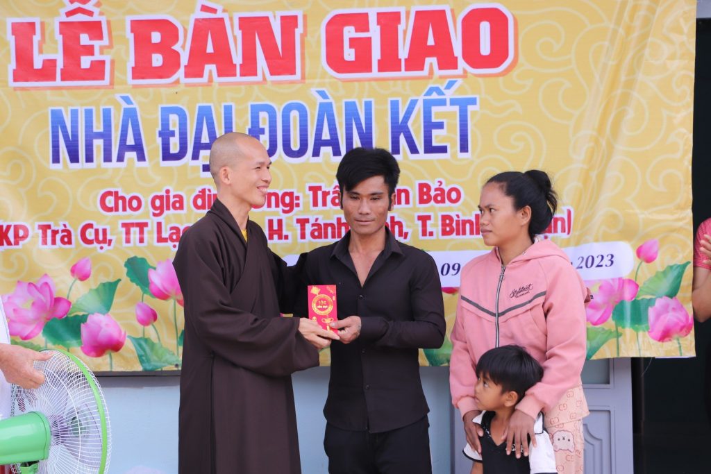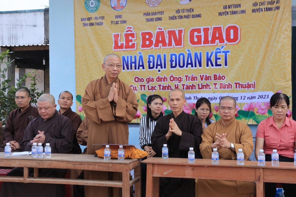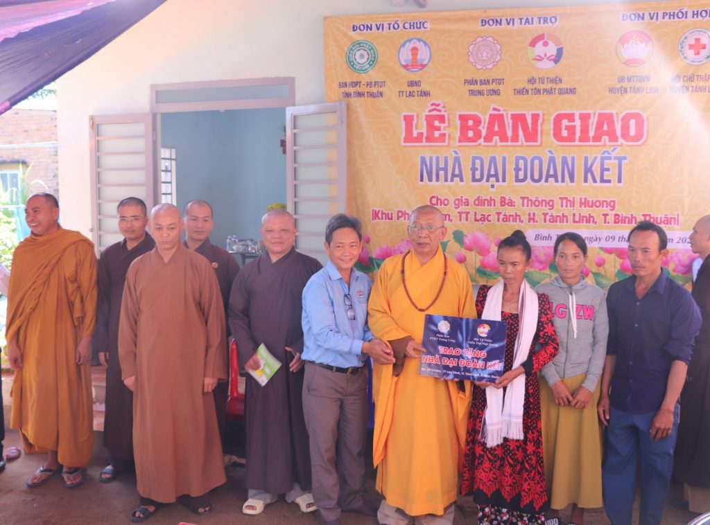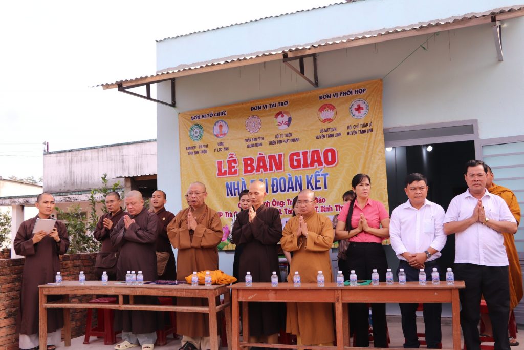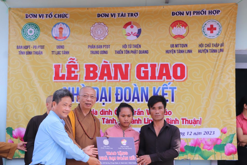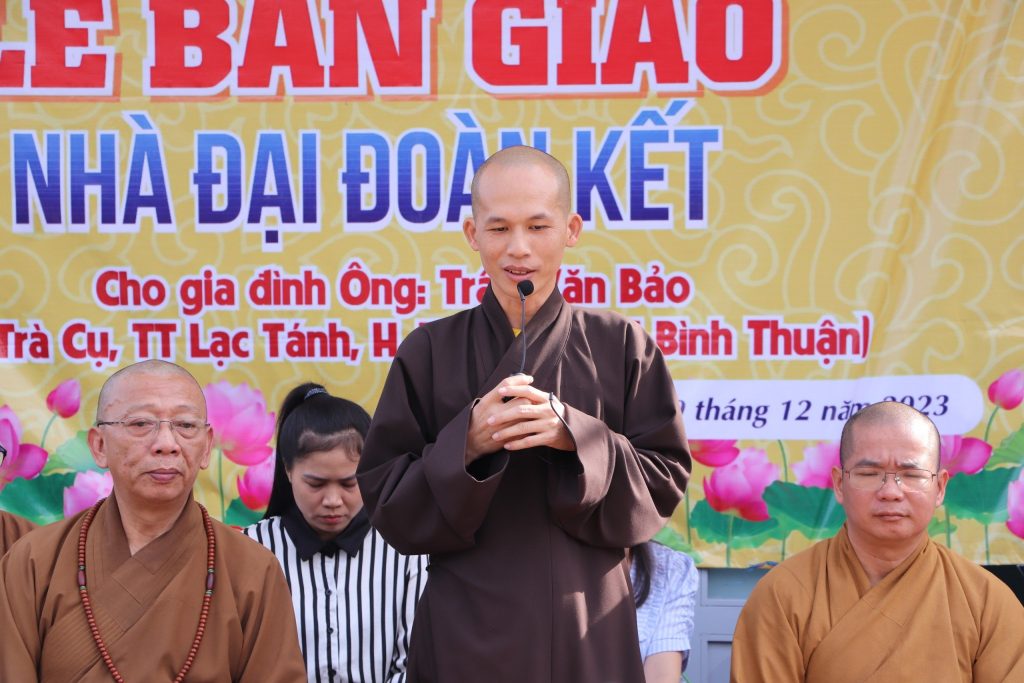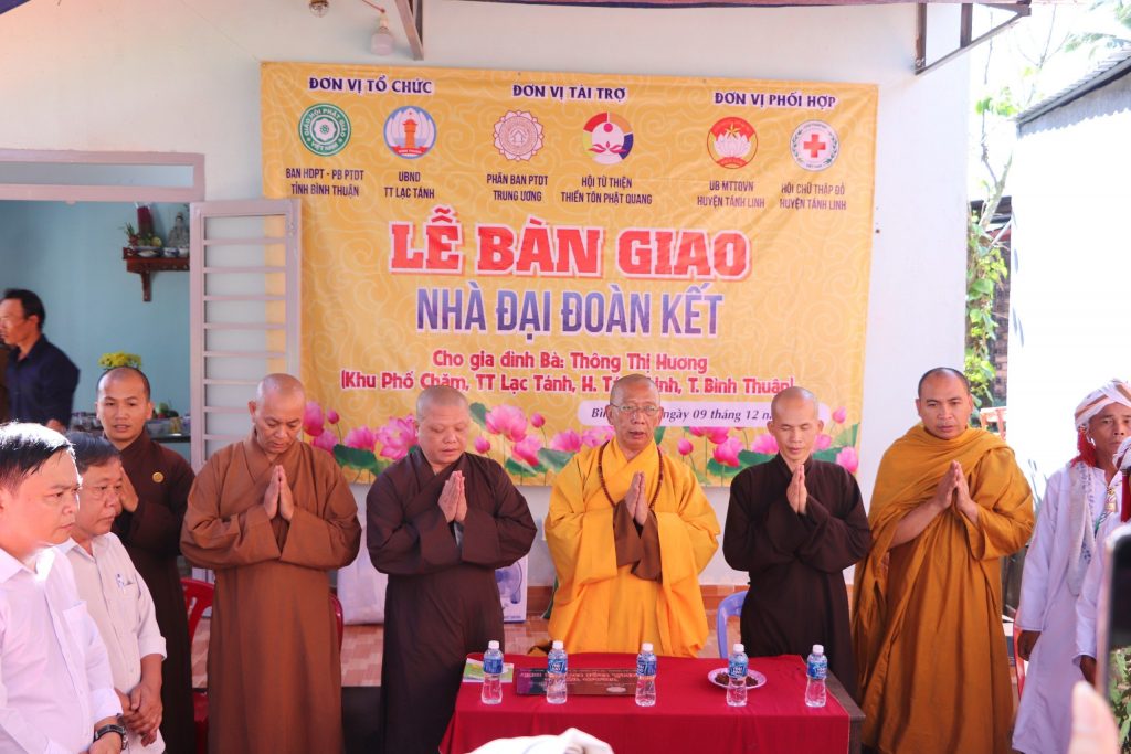 Tham dự buổi lễ bàn giao nhà đại đoàn kết còn có sự hiện diện của TT.Thích Nhuận Tín – Phó Phân Ban PTDT TƯ; TT.Thích Thông Châu – Trưởng Ban HDPT Tỉnh Bình Thuận, Trưởng Ban Trị sự GHPGVN huyện Tánh Linh cùng chư tôn đức Tăng Ni là thành viên Phân Ban PTDT Trung ương.
