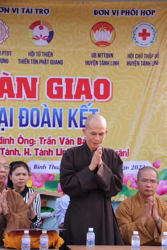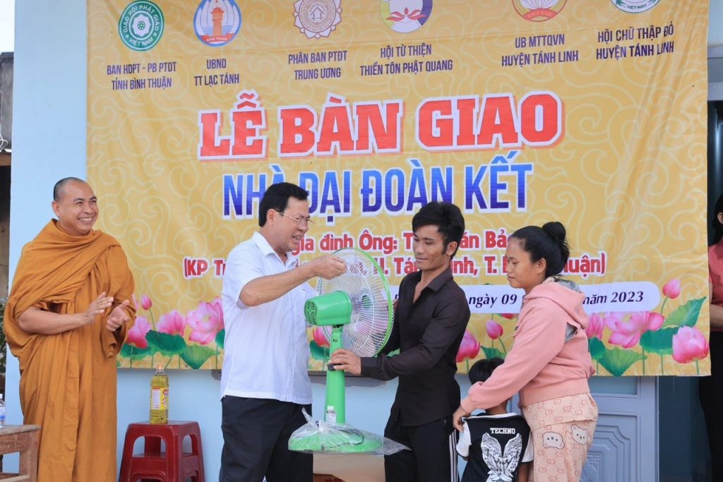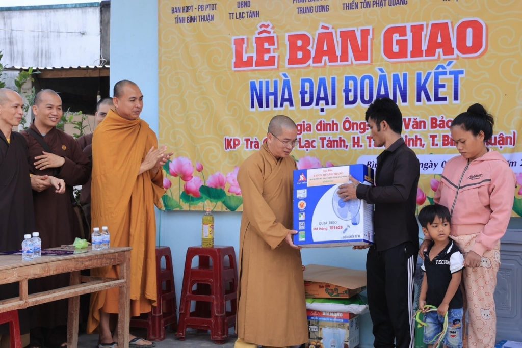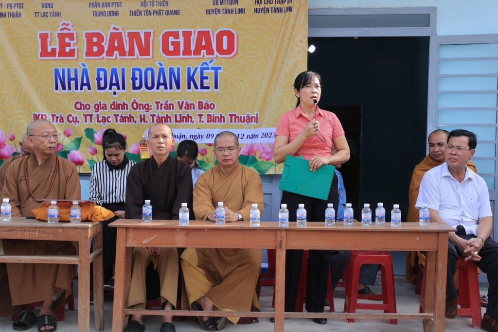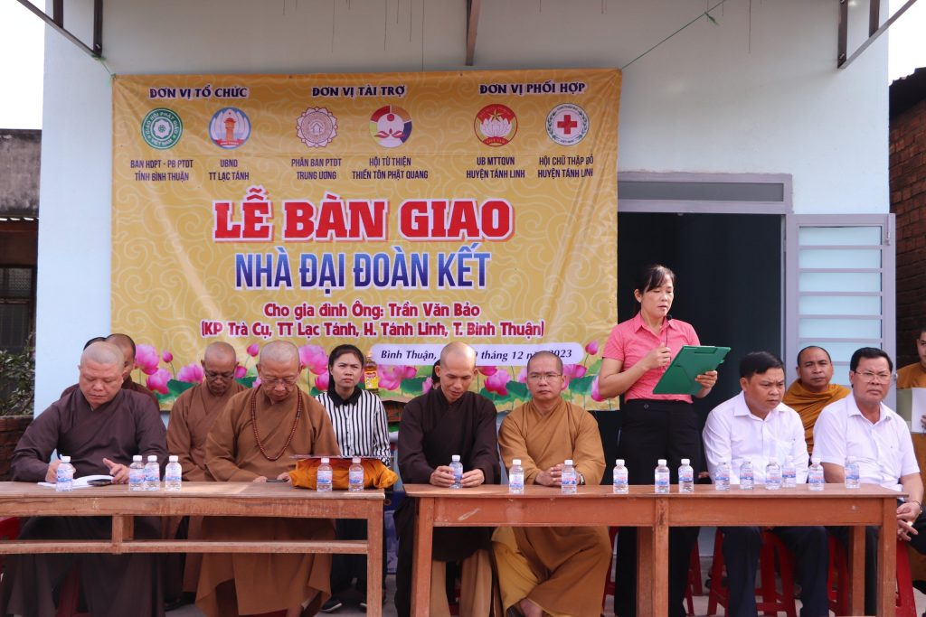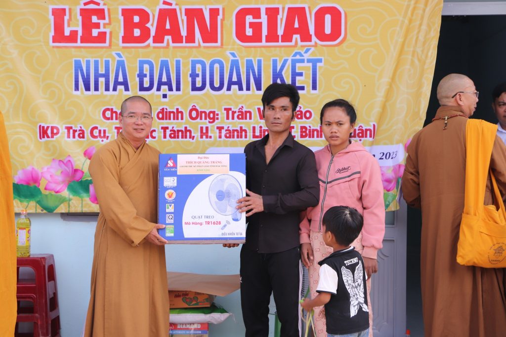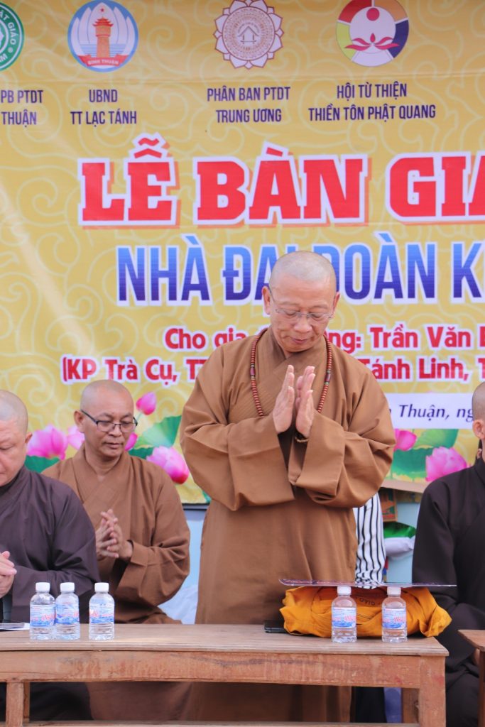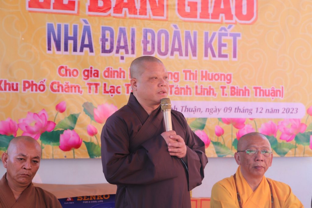 Tham dự buổi lễ bàn giao nhà đại đoàn kết còn có sự hiện diện của TT.Thích Nhuận Tín – Phó Phân Ban PTDT TƯ; TT.Thích Thông Châu – Trưởng Ban HDPT Tỉnh Bình Thuận, Trưởng Ban Trị sự GHPGVN huyện Tánh Linh cùng chư tôn đức Tăng Ni là thành viên Phân Ban PTDT Trung ương.