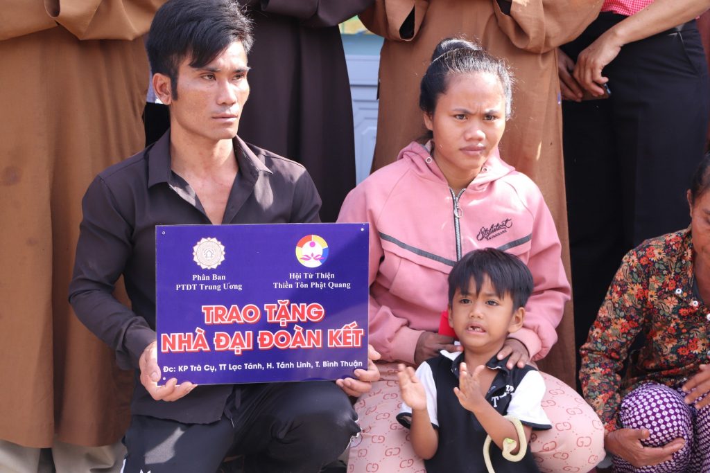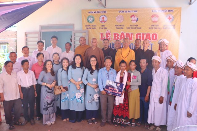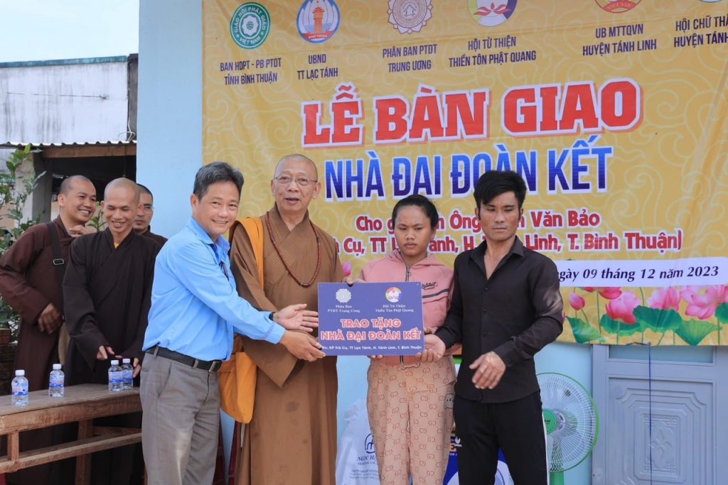 Sáng Ngày 09.12.2023 (nhằm 27 tháng 10 năm Quý Mão), Phân Ban PTDT TW do Thượng toạ Thích Quảng Tuấn – UV TT HĐTS GHPGVN, Trưởng Phân Ban PTDT TW làm trưởng đoàn đã phối hợp cùng Mạnh thường quân và Quý cấp chính quyền tỉnh Bình Thuận tiến hành bàn giao nhà Đại Đoàn Kết và An Vị tượng Phật cho hai hộ gia đình đồng bào Dân tộc là hộ Ông Trần Văn Bảo ( Dân tộc Cờ Ho) và Bà Thông Thị Hương ( Dân tộc Chăm) tại TT Lạc Tánh huyện Tánh Linh Tỉnh Bình Thuận.