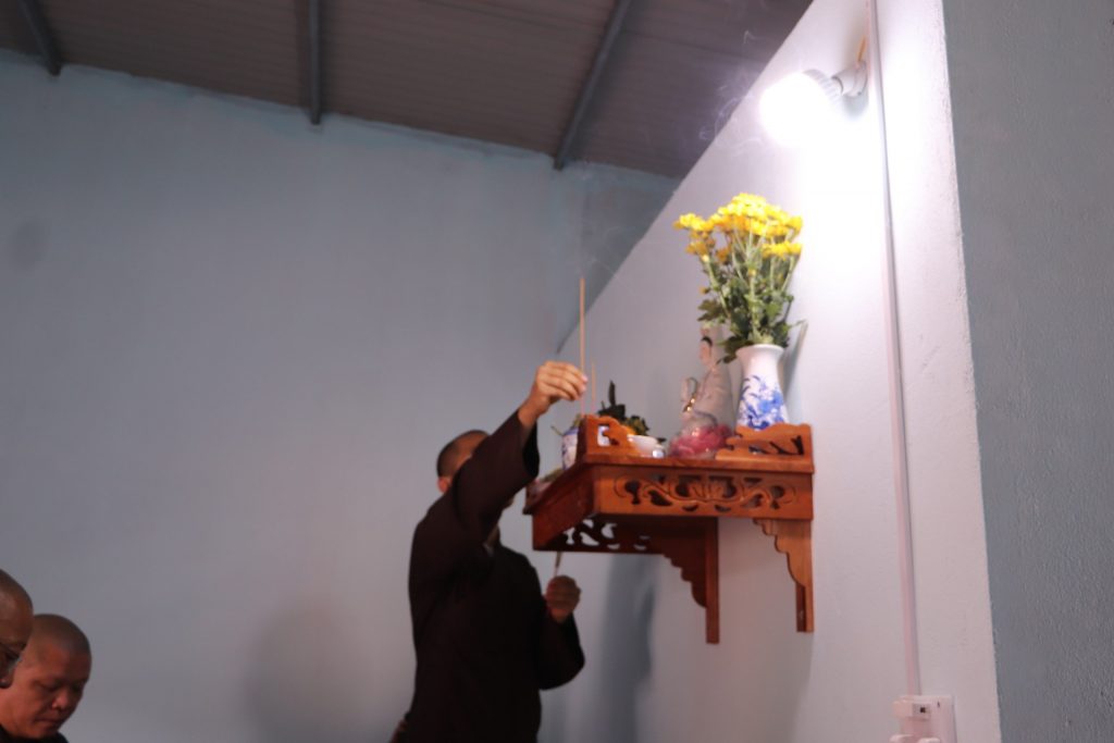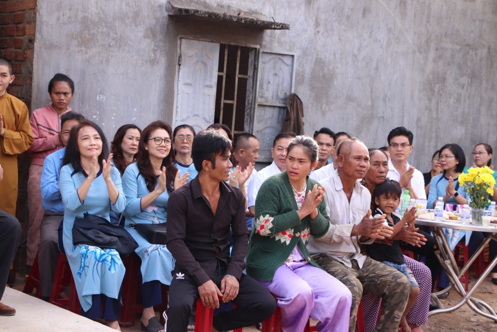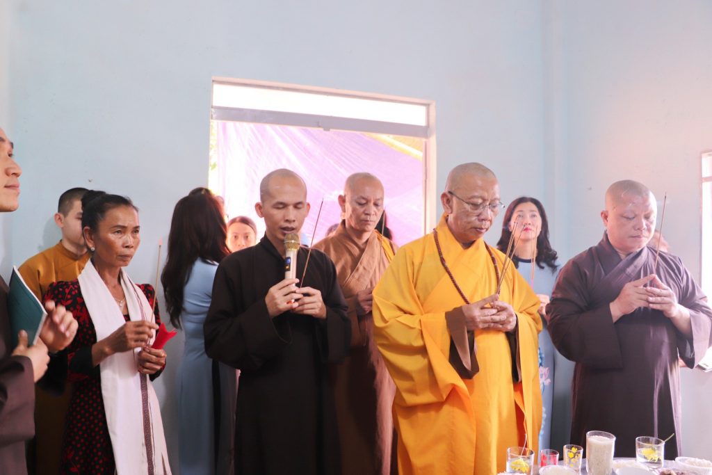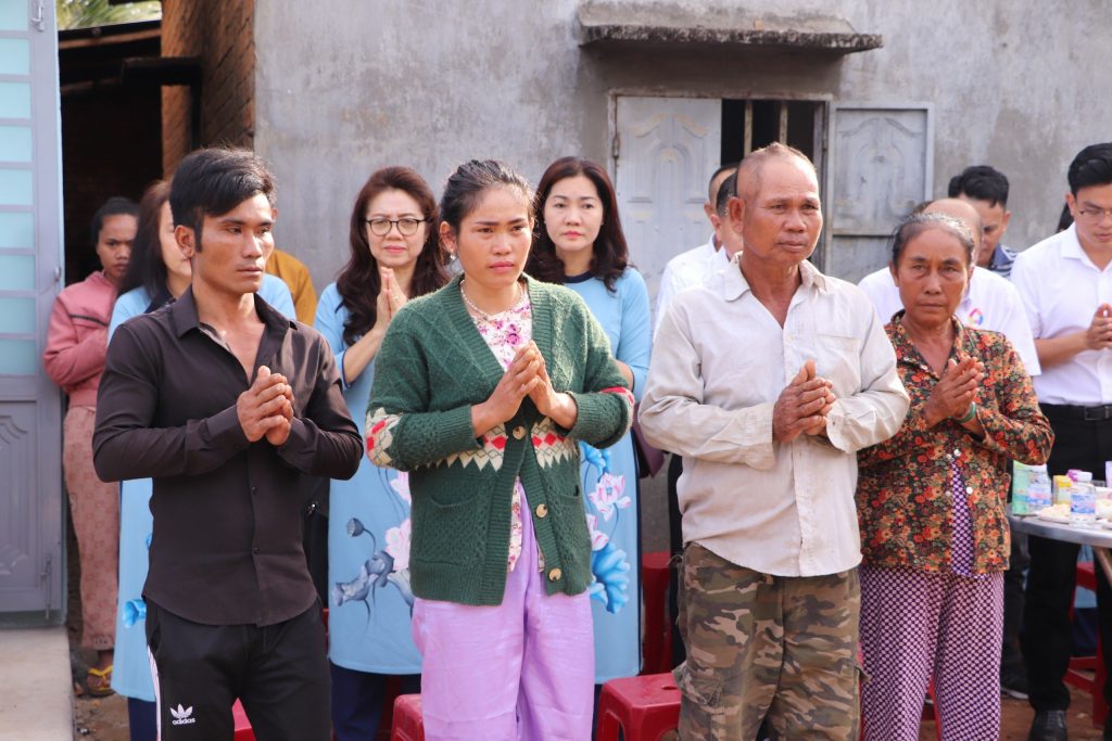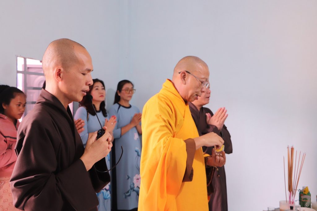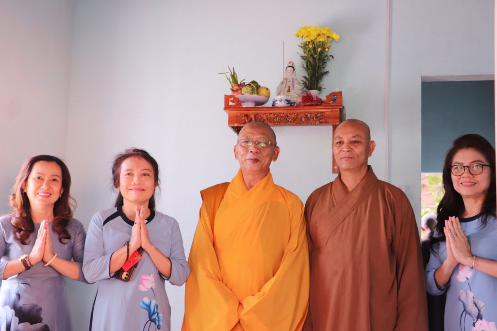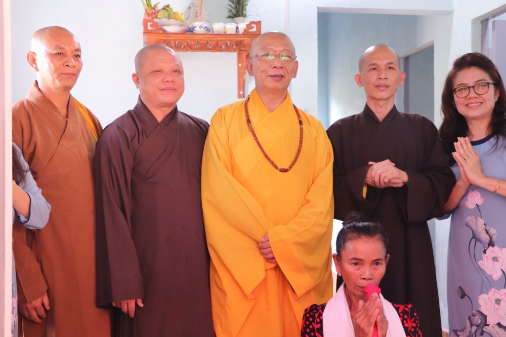 Tại buổi lễ trao tặng nhà Đại đoàn kết, TT Thích Quảng Tuấn cùng chư tăng đã làm lễ An Vị tượng Phật tại gia đình đồng nguyện gia đình có nhiều sức khoẻ để lao động và học tập ngày càng có điều kiện ổn định và phát triển trong cuộc sống.