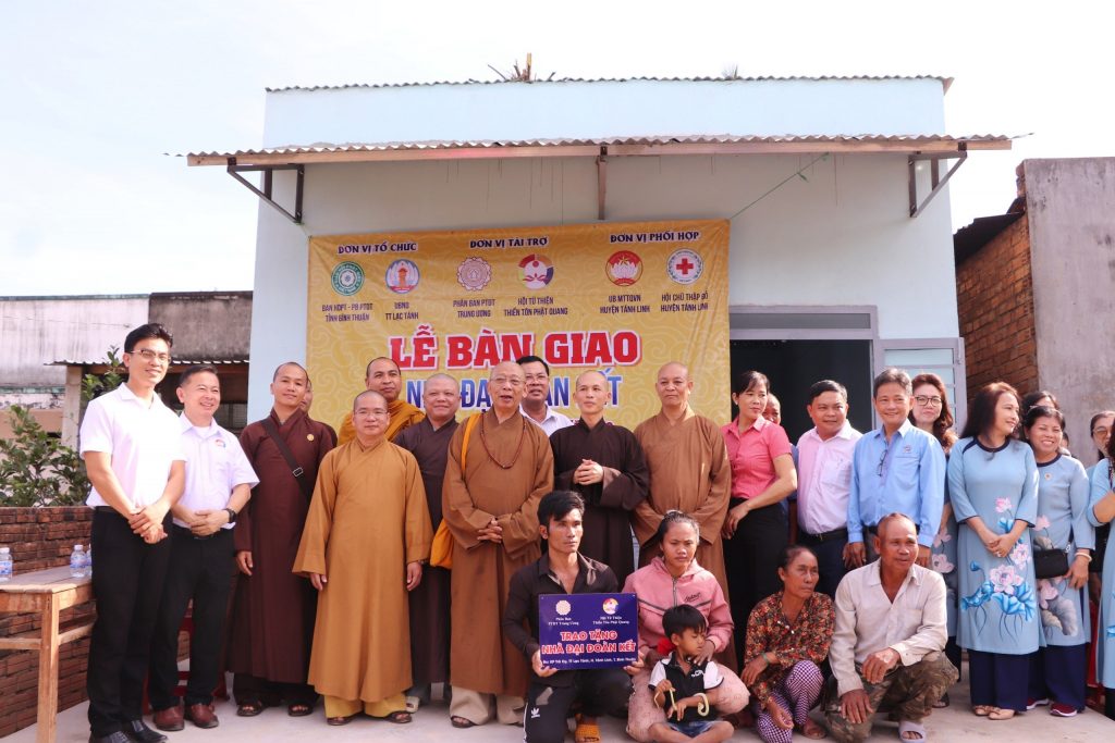 Tiến hành bàn giao “Nhà Đại đoàn kết” cho gia đình Ông Trần Văn Bảo và Bà Thông Thị Hương tại TT Lạc Tánh huyện Tánh Linh tỉnh Bình Thuận. Mồi Căn nhà có diện tích khoảng 70 m2, mái lợp tole, vách tường, cửa sắt, kinh phí xây dựng hơn 80 triệu đồng ( tổng kinh phí 2 căn nhà là 160 triệu đồng), do Hội Từ Thiện Thiền Tôn Phật Quang tài trợ.