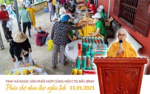 Chung tay chia sẻ đồng bào sắm Tết vui vẻ, đón Xuân Tân Sửu ngày 31/1/2021 Ni Sư Viên Liên ban thường vụ Hội Chữ thập đỏ huyện Bắc Bình, phó ban từ Phật Giáo tỉnh Bình Thuận trụ trì tịnh xá Ngoc Vân thị trấn Chợ Lầu huyện Bắc Bình tỉnh Bình Thuận, Bà Nguyễn Thị Kim Luận phó chủ tịch Hội Chữ thập đỏ huyện Bắc Bình đồng tổ chức chợ Tết vì người nghèo và nạn nhân chất độc da cam tại huyện nhà.