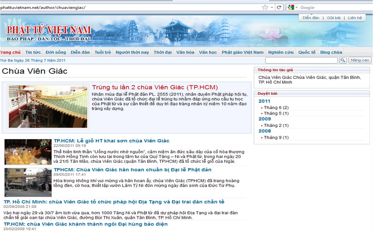 Từ trước tới nay, thông tin hoạt động của các chùa được đăng tải trong mục Tin tức. Tuy nhiên, do tính đa dạng thông tin trong mục này, lại không có tiện ích quản lý thông tin của từng chùa, nên gây khó khăn cho việc theo dõi luồng thông tin của từng chùa.