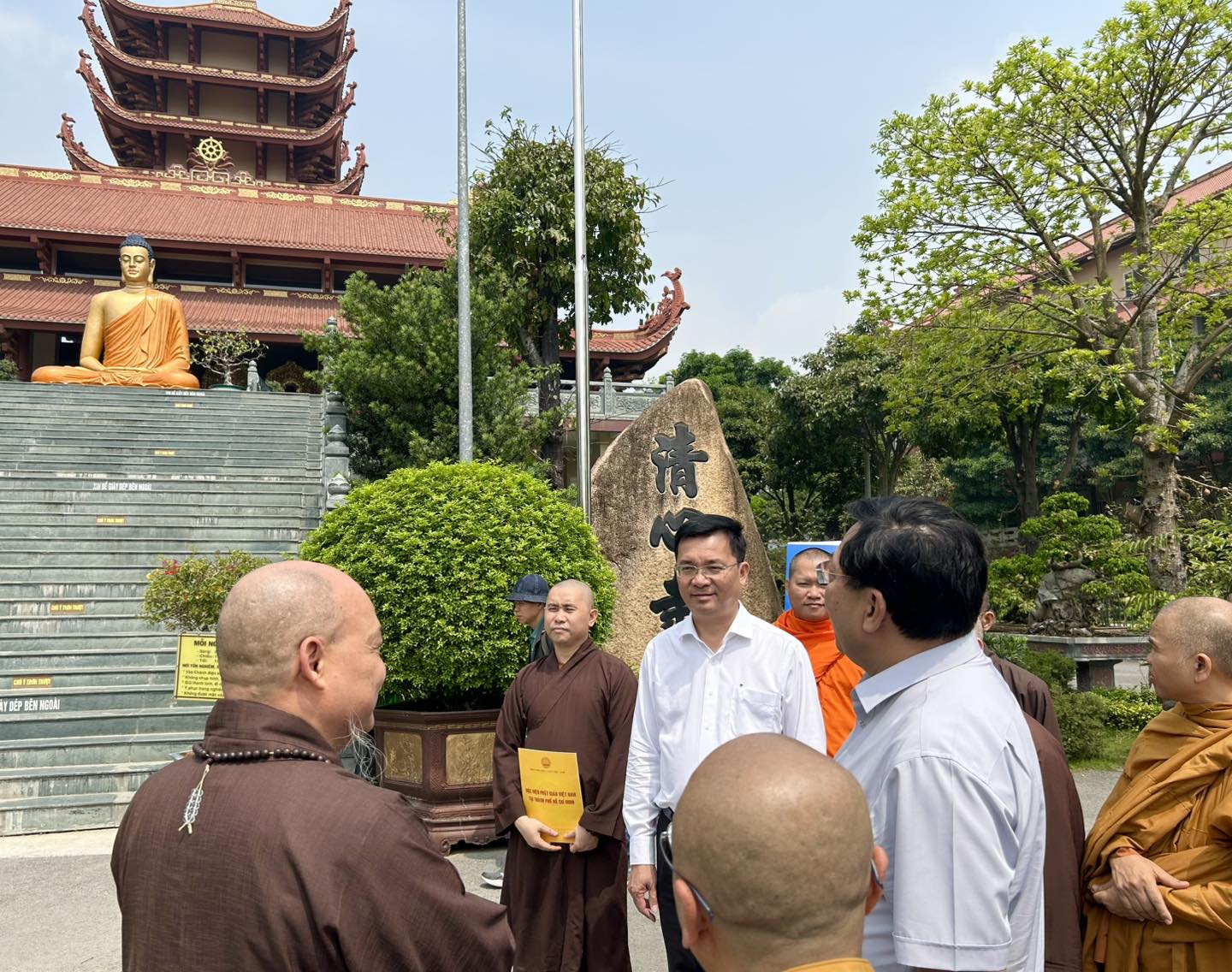 Đi cùng có ông Vũ Hoài Bắc – Trưởng Ban Tôn giáo Chính phủ, ông Phạm Ngọc Chuyên – Trưởng Phòng Phật giáo, Ban Tôn giáo Chính phủ; đại diện các cơ quan hữu quan Trung ương và lãnh đạo UBND huyện Bình Chánh.
