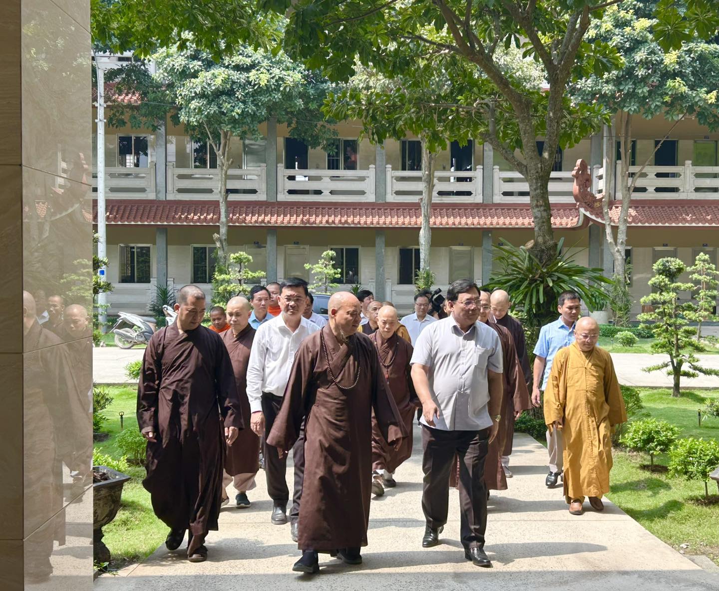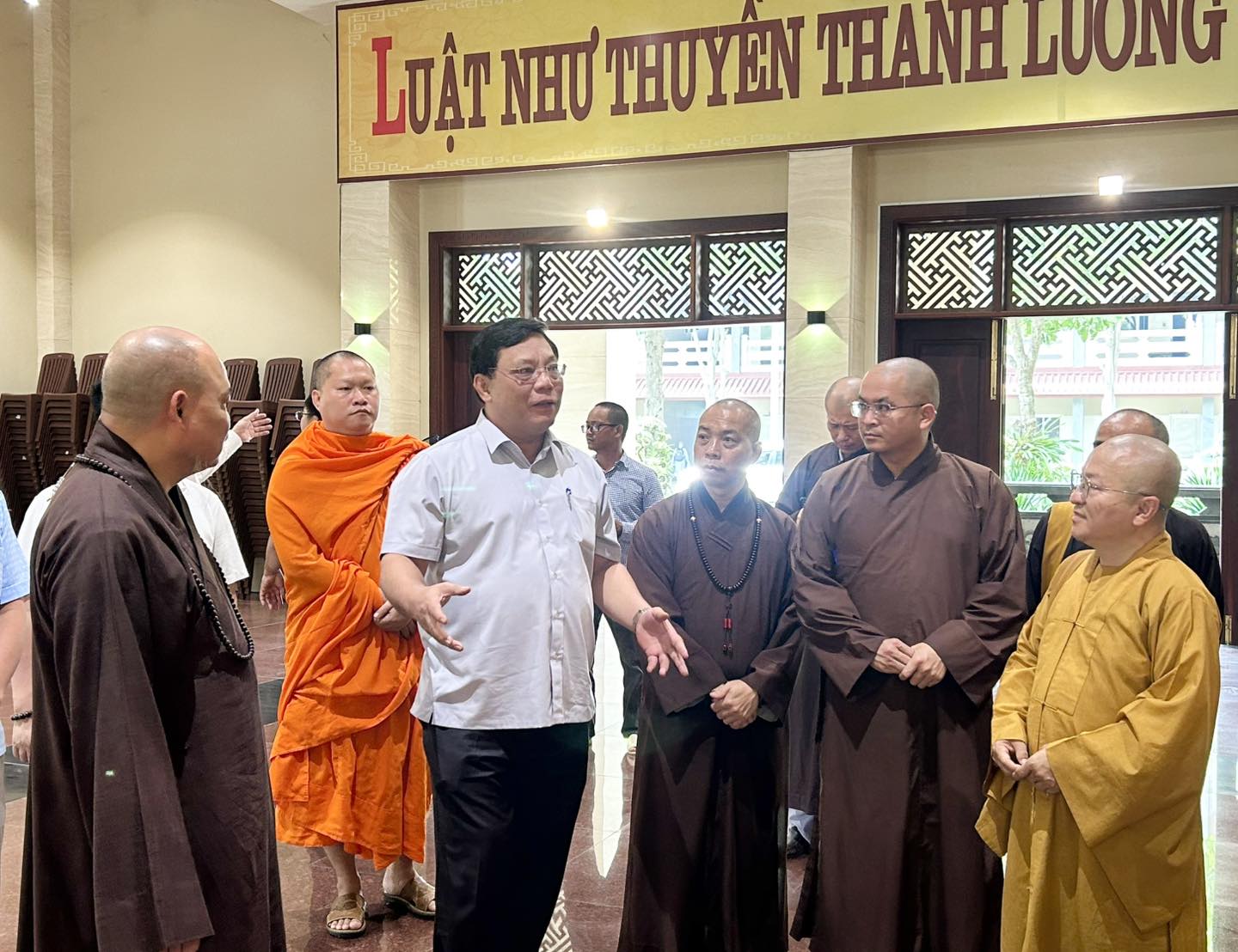 Tiếp phái đoàn có HT. Thích Thanh Phong – Phó Chủ tịch HĐTS, Phó Chủ tịch Thường trực Uỷ ban Tổ chức Đại lễ Vesak tại Việt Nam; TT. Thích Minh Nhẫn – Uỷ viên Thư ký HĐTS, Phó Trưởng Ban Thường trực Ban Thông tin Truyền thông Trung ương; TT. Thích Nhật Từ – Uỷ viên Thường trực HĐTS, Phó Viện trưởng Thường trực Học viện PGVN tại TP. HCM, cùng chư tôn đức Ban Thư ký, các ban chuyên môn phục vụ Đại lễ, chư tôn đức Hội đồng Điều hành Học viện PGVN tại TP.HCM.