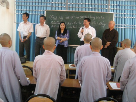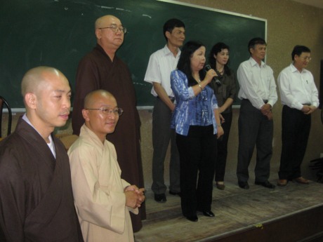 Đại diện đoàn Khảo sát – Đánh giá có ông Nguyễn Thế Doanh, Trưởng Ban Tôn giáo Chính phủ; bà Hoàng Thị Lan Phương, Phó Vụ trưởng Vụ Giáo dục Đại học, Bộ Giáo dục và Đào tạo; ông Bùi Hữu Dược, Vụ trưởng Vụ Phật giáo, Ban Tôn giáo Chính phủ.