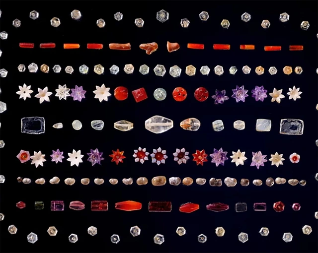 Bộ sưu tập hơn 300 loại đá quý bao gồm thạch anh tím, topaz và ngọc trai có niên đại từ Đế chế Maurya, thời đại Ashokan, khoảng năm 240-200 trước Công nguyên.
