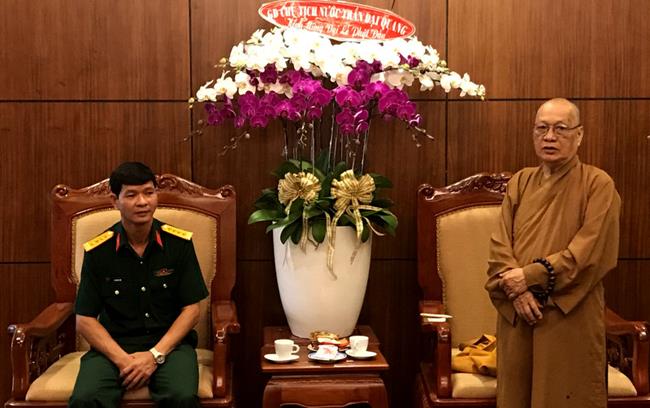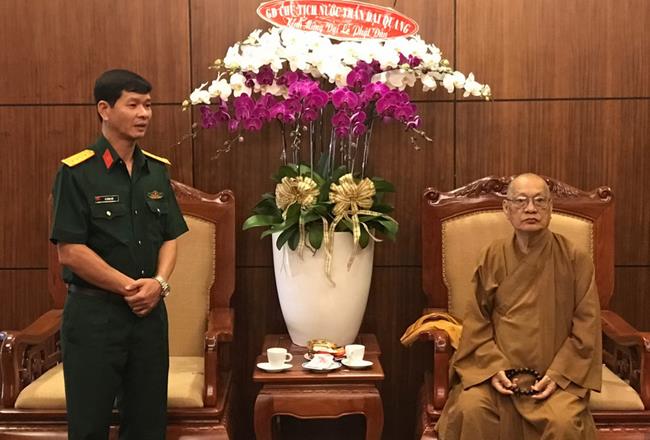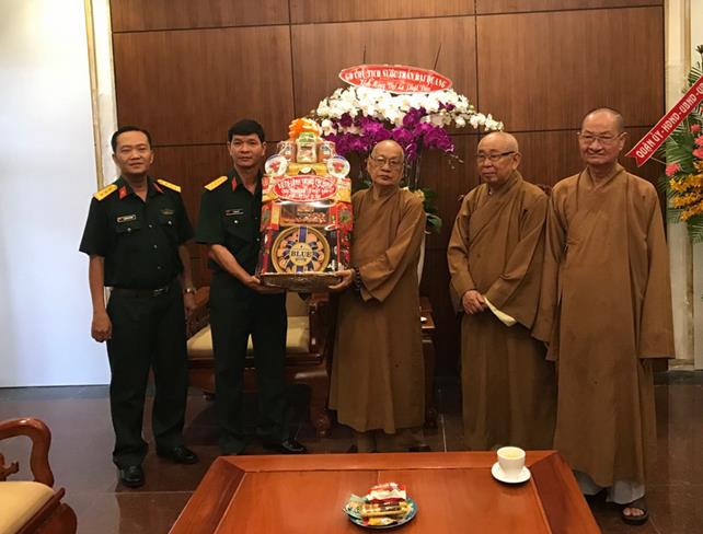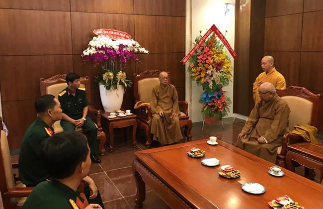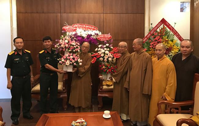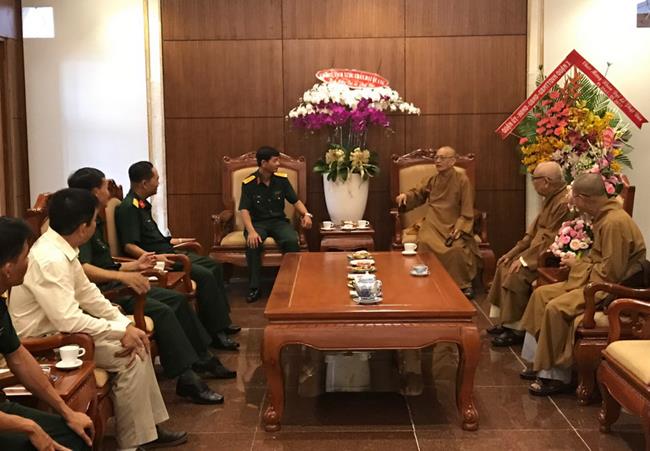 Nhân dịp Đại lễ Phật đản PL. 2561, Đại tá Lê Ngọc Hải – Phó Tư lệnh Bộ Tư lệnh Thành phố Hồ Chí Minh đến thăm chư tôn đức lãnh đạo BTS Giáo Hội Phật giáo Việt Nam TP.HCM. Đại tá đã gửi lời chúc sức khỏe đến chư tôn đức Trưởng lão Hòa thượng. Ông cũng ghi nhận những đóng góp to lớn của Phật giáo TP.HCM trong công tác hướng dẫn và giáo dục tín đồ sống tốt đời đẹp đạo, giáo dục an ninh quốc phòng, phát động các chương trình có giá trị nhân văn – ủng hộ tịnh tài tịnh vật hướng về biển đảo thân yêu, tuyến đầu tổ quốc… Ông hy vọng Phật giáo thành phố tiếp tục truyền thống hộ pháp an dân, làm tốt vai trò chức năng của mình trong công cuộc xây dựng và hướng đến con đường nhất quán “đạo pháp, dân tộc.chủ nghĩa xã hội” .