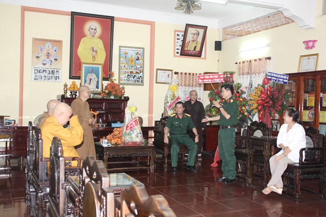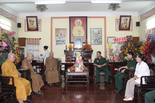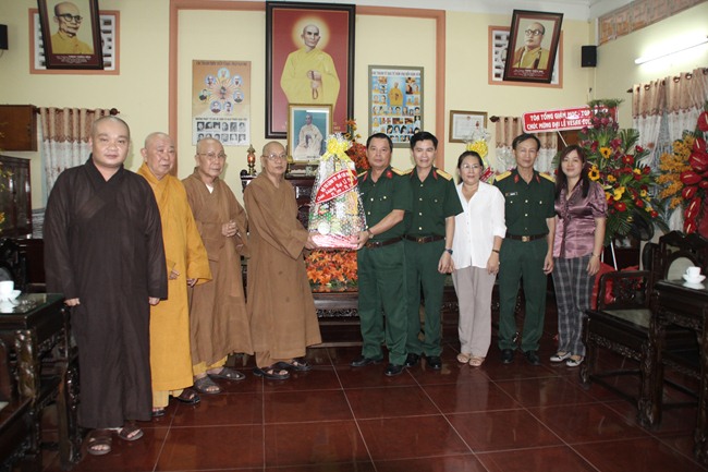 Đến thăm và làm việc đồng chí Phạm Tiến Phó tư lệnh Bộ Tư Lệnh TP.HCM chúc mừng chư tôn thiển đức nhân mùa Phật Đản hoàn thành công tác Phật sự , sức khỏe an lành .