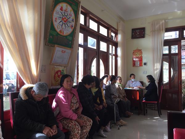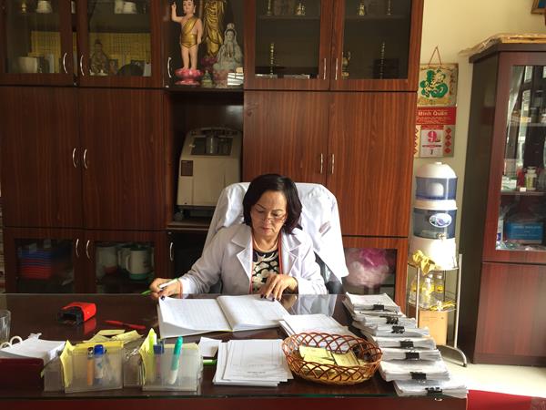 Chúng tôi bước lên bậc thềm khu tòa nhà văn phòng Ban TTXH GHPGVN tỉnh Lâm Đồng và cũng là Phòng khám Y học cổ truyền Linh Quang. Không gian tĩnh lặng nơi này như bị phá vỡ bởi người ra kẻ vào gồm đủ lứa tuổi với những cảm xúc khác nhau. Nơi cuối phòng này là bàn khám bệnh với hình ảnh một vị bác sĩ Đông y đứng tuổi, trong trang phục blouse trắng với nét mặt thanh thoát, đang cẩn trọng đặt ống nghe, chẩn mạch và thăm hỏi, xem xét biểu hiện bệnh lý của từng người bệnh.