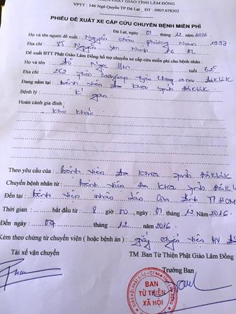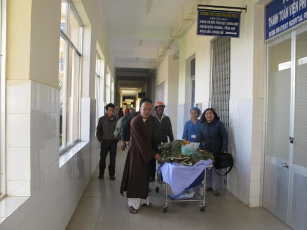 “Bệnh viện khuyên gia đình nên đưa người thân về nhà nhưng tiền thuê xe quá cao trong khi sự giúp đỡ của các nhà hảo tâm chỉ có hạn. Theo lời giới thiệu của bác sĩ Tạo, Trưởng khoa Hồi sức tích cực, Bệnh viện tỉnh Lâm Đồng, chúng tôi lại một lần nữa lên đường giúp miễn phí việc chuyên chở bệnh nhân từ Đà Lạt về Sóc Trăng. Đúng như dự đoán, trên đường đi chị Đào đã tử vong, để lại bao thương tiếc. Đó là một trong những chuyến xe cấp cứu vượt đường xa trong nỗi buồn vô hạn,” ĐĐ.Thích Linh Toàn bùi ngùi.