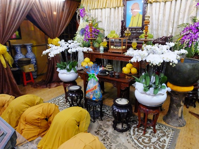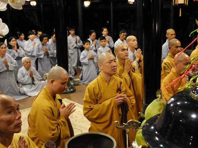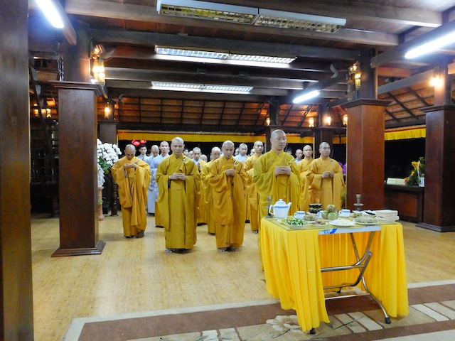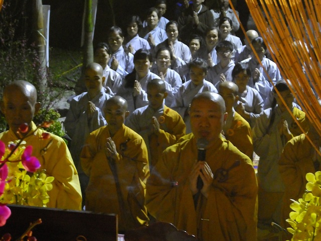 Cũng như thông lệ hằng năm, vào thời khắc chuyển giao năm cũ bước sang năm mới, chúng đệ tử Viện Chuyên Tu đảnh lễ khánh tuế Sư ông Viện chủ và Thầy trụ trì. Năm nay cũng vậy, vào đêm 30 Tết Ất Mùi, Chư Tăng và Phật tử Viện Chuyên Tu được Thầy trụ trì dẫn đến bảo tháp Tịch Quang đảnh lễ Sư ông như Người vẫn còn đây.