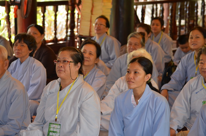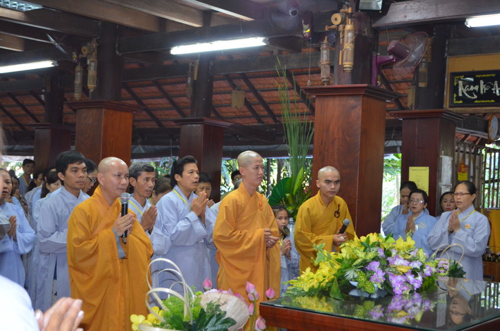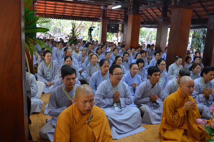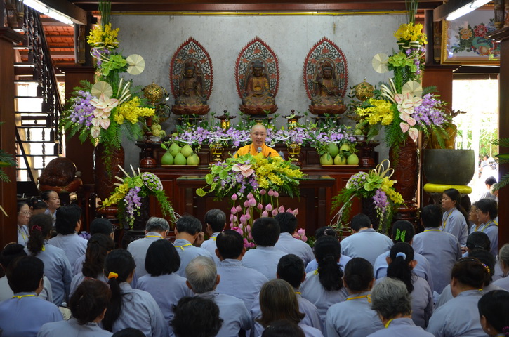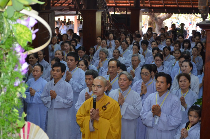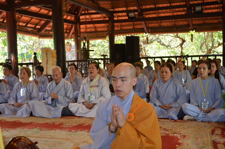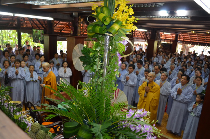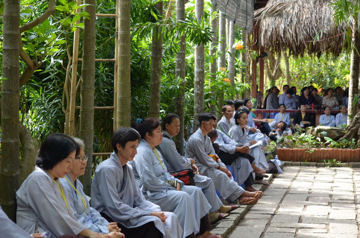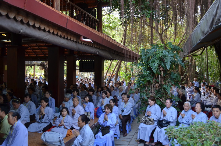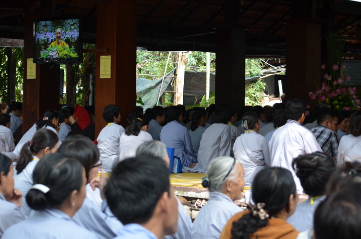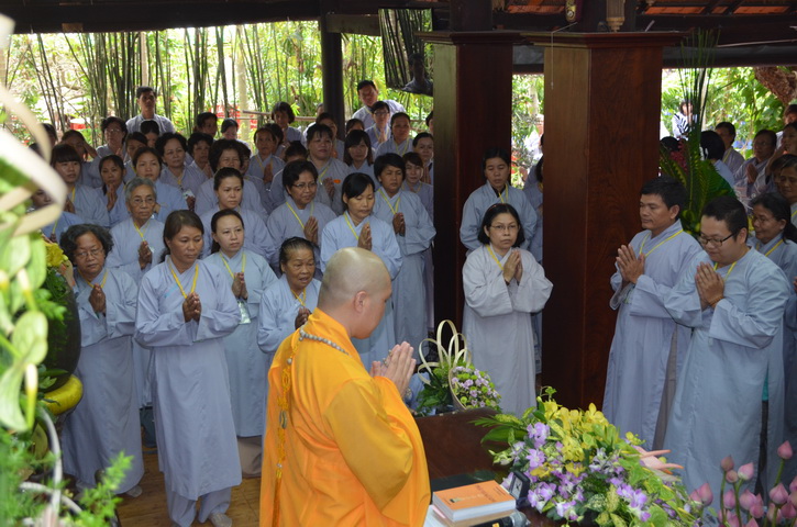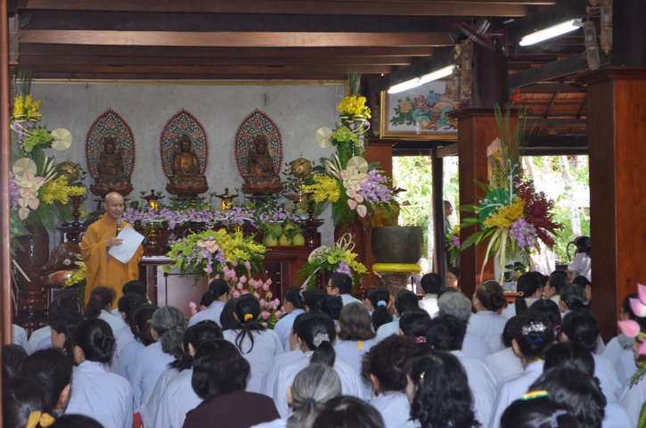 Sau thời thuyết giảng, quý hành giả tham gia lễ cúng Phật và dùng cơm trưa. Buổi chiều, quý Phật tử có một khóa lễ sám hối Hồng Danh và cùng nghe lại “năm giới” để sách tấn nhau trong tu tập, gạn lọc thân tâm, xả ly ái dục.