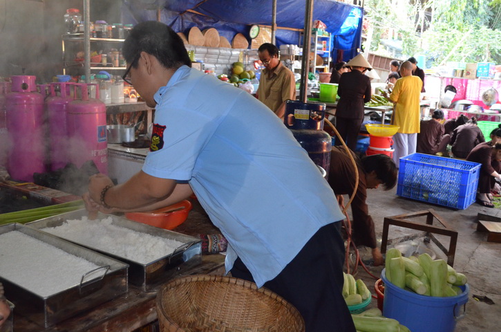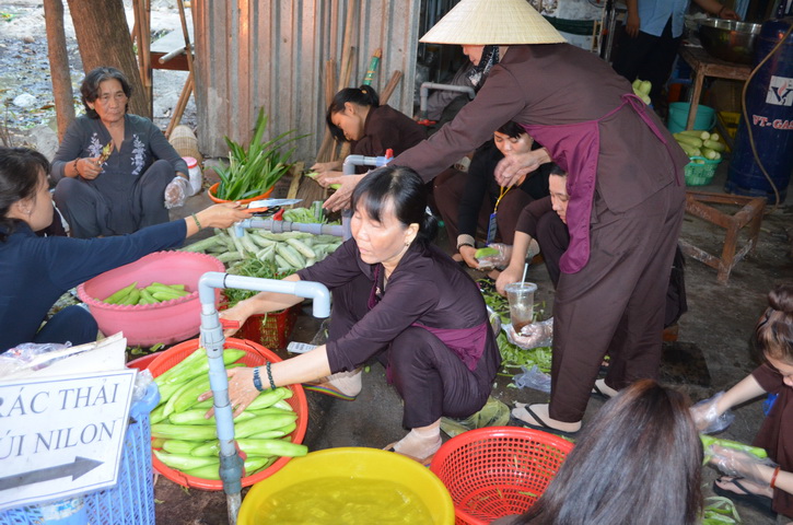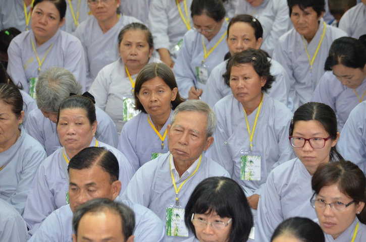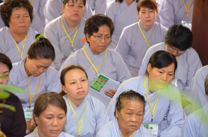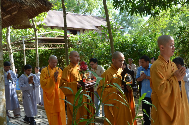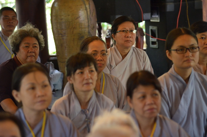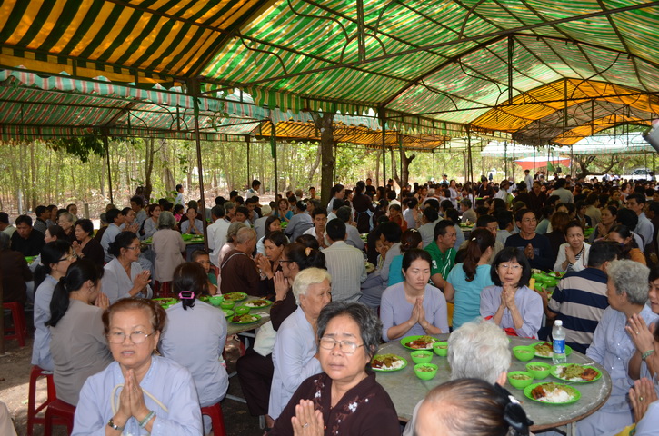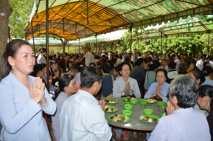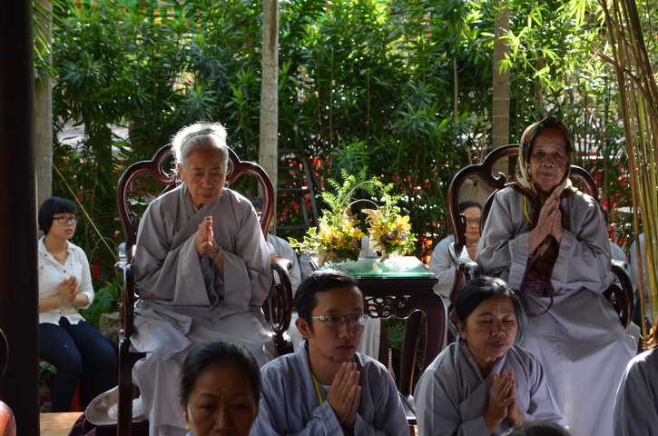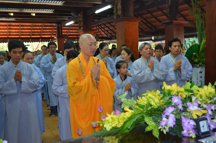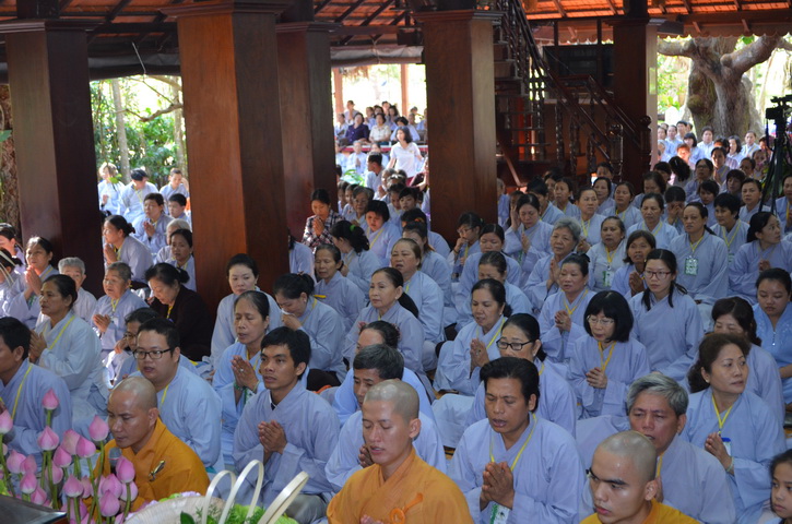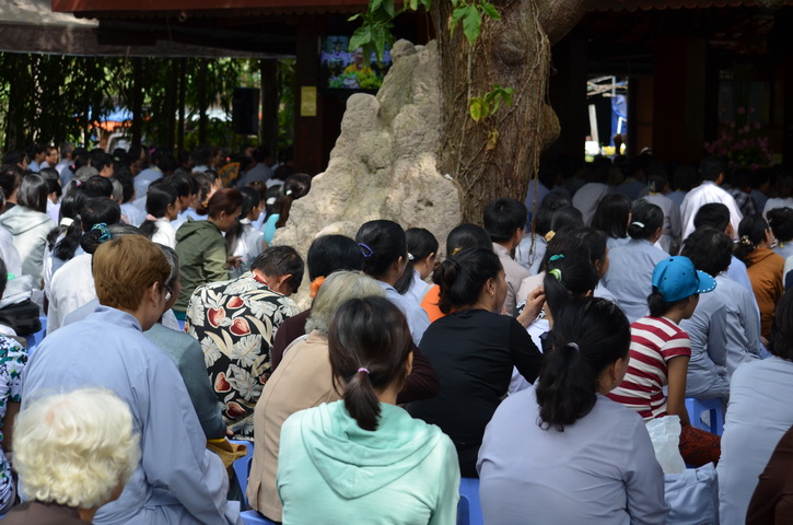 Sau thời thuyết giảng, quý hành giả tham gia lễ cúng Phật và dùng cơm trưa. Buổi chiều, quý Phật tử có một khóa lễ sám hối Hồng Danh và cùng nghe lại “năm giới” để sách tấn nhau trong tu tập, gạn lọc thân tâm, xả ly ái dục.