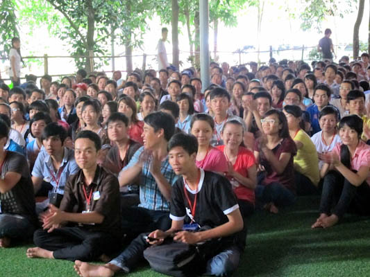 Sáng ngày 13/04, khi muôn cây đón ánh nắng mặt trời vừa lên cũng là lúc khuôn viên chùa mở rộng thêm để chào đón hàng nghìn Phật tử, Đoàn thanh niên Phật Quang và sinh viên mới tới, trên tinh thần công quả phục vụ cho Đại lễ.
