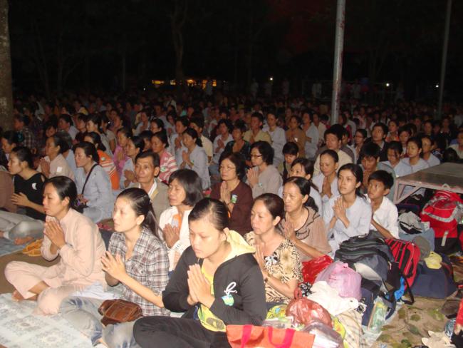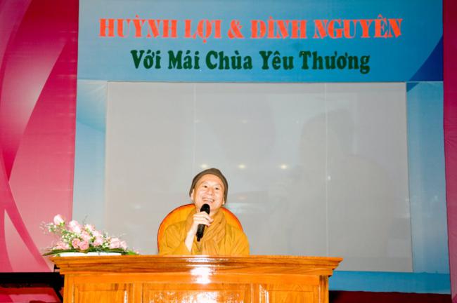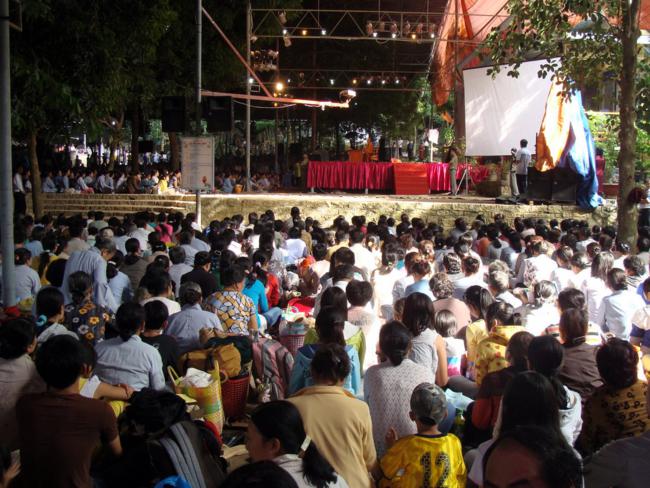 Tiếp theo, tại sân Chánh điện đã diễn ra thời Pháp thoại có chủ đề CUỘC CHIẾN CỦA DƯ LUẬN với sự tham dự của Chư tôn đức Tăng Ni các Tự viện và hơn hai vạn Phật tử thính Pháp trong đêm đó. Mặc dù mưa to tầm tả, số lượng người quá tải, không gian thật chật hẹp, nhưng không khí buổi thuyết Pháp vẫn trang nghiêm, ổn định.