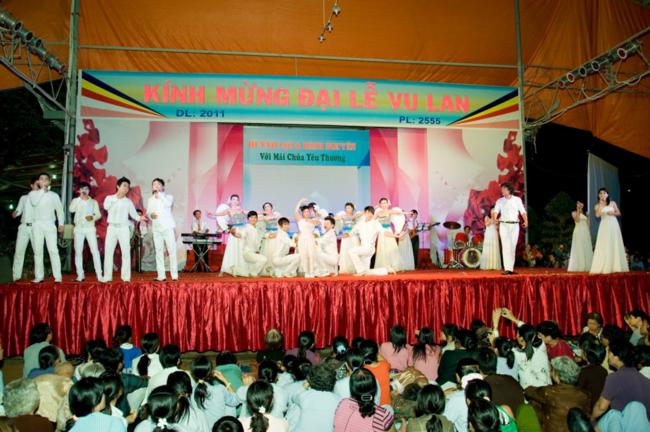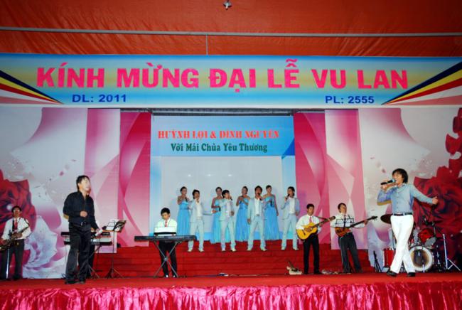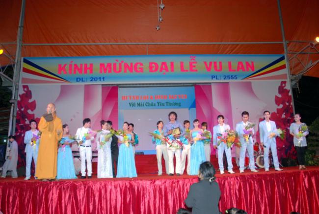Thời Pháp kết thúc, nhường sân khấu lại cho MC Minh khôi và Như Quỳnh điều khiển chương trình Văn nghệ có chủ đề Đình Nguyên Và Huỳnh Lợi Với Mái Chùa Yêu Thương, cùng sự tham gia của các ca sĩ, nghệ sĩ nổi tiếng, từ thành phố Hồ Chí Minh đến ngôi Già lam nơi chốn rừng sâu như Đình Nguyên, Huỳnh lợi, Thu Trang, Vũ đoàn Hoa Nắng, Vũ đoàn Á Đông, nhóm Ca – bè SSM của ca sĩ Huỳnh Lợi đã hát bè cho rất nhiều ca sĩ ngôi sao hiện nay. Và những người thực hiện chương trình văn nghệ như hòa mình với mùa Lễ hội Vu Lan, đã mang từng lời ca, điệu múa, kính dâng lên Chư tôn thiền đức như một lời tri ân thầm kính nhất; đồng thời góp vui cho các Phật tử xa gần về dự Lễ hội với nhiều tiết mục đa dạng, phong phú. Những tràng pháo tay thật nồng nhiệt, thật vui và ấm áp, kéo dài tới khuya tưởng như không muốn chia tay, khiến cho những người đi dự Lễ dường như quên cả cái lạnh của núi rừng trong lúc cơn mưa bám theo.