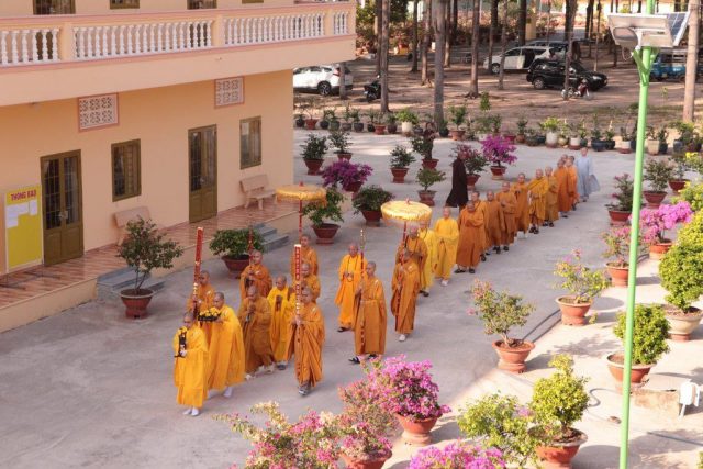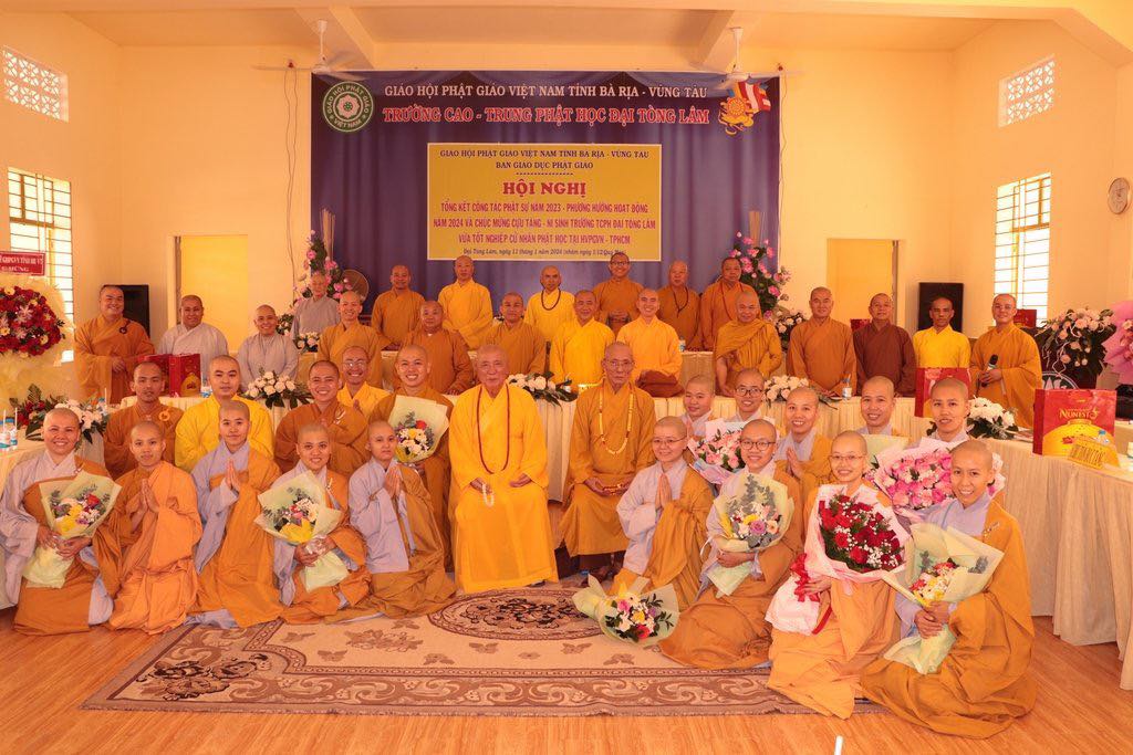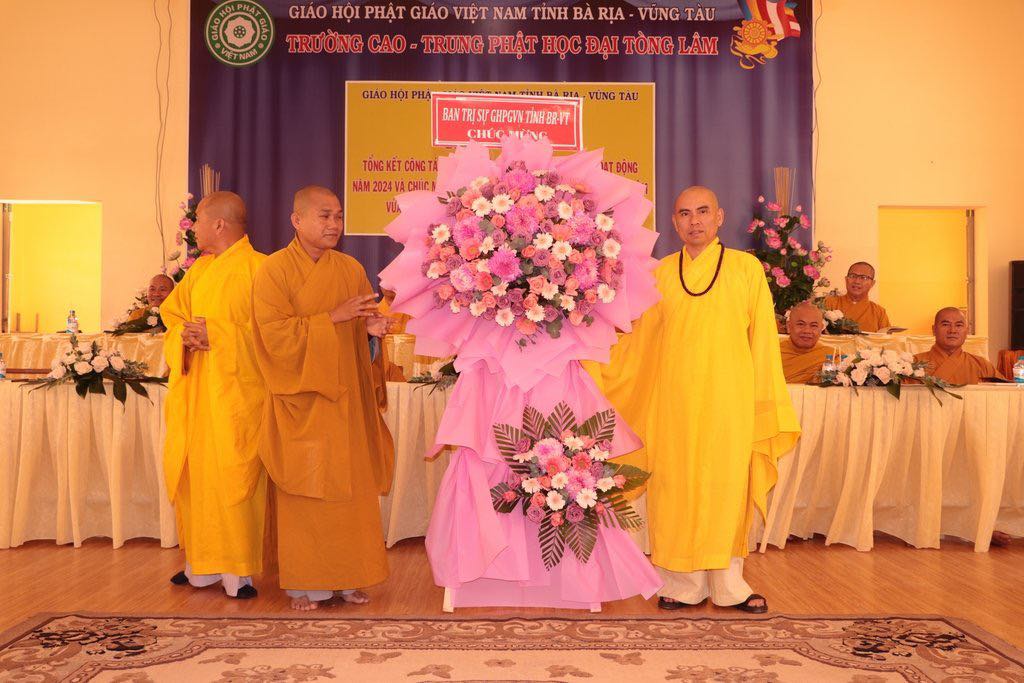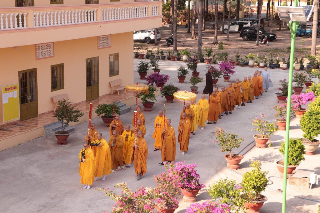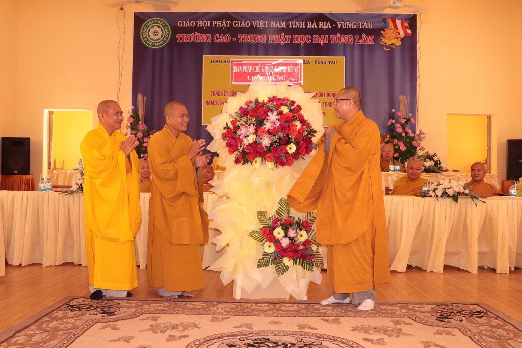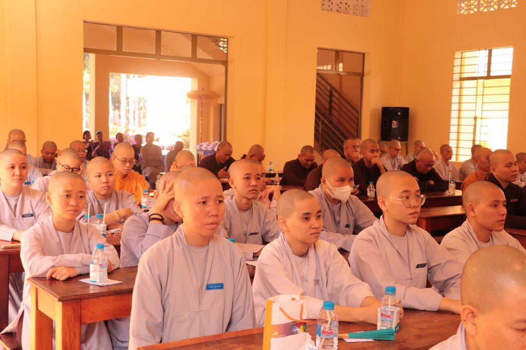 Buổi lễ được trang nghiêm tổ chức tại Giảng đường Phật học viện – Trường Cao trung Phật học Đại Tòng Lâm trong khuôn viên thánh địa Vạn Phật Quang – Đại Tòng Lâm tự. Quang lâm tham dự có HT. Thích Quảng Hiển, thành viên thường trực HĐCM Trung ương – Hiệu trưởng Trường Cao trung Phật học Đại Tòng Lâm; HT. Thích Huệ Trí, Phó Chủ tịch HĐTS Trung ương – Trưởng Ban Trị sự PG tỉnh; TT. Thích Nhuận Nghĩa, Uỷ viên HĐTS – Phó Trưởng ban thường trực BTS PG tỉnh; Ni trưởng Thích nữ Như Như, Phó Trưởng ban Thường trực Phân Ban ni giới Trung ương cùng một số Chư tôn đức trong thường trực BTS tỉnh, Ban Giao dục PG tỉnh và Giáo thọ sư Trường Cao trung Phật học Đại Tòng Lâm.