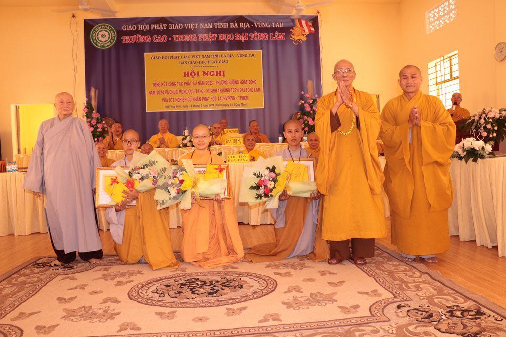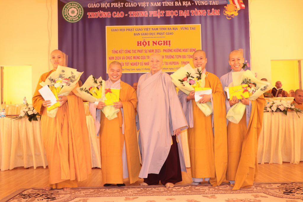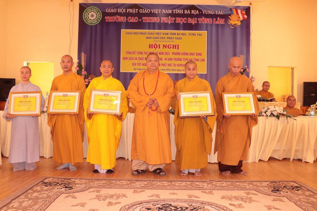 Cũng nhân lễ tổng kết hoạt động Phật sự năm 2023, Ban Trị sự GHPGVN tỉnh đã tặng Bằng công đức cho tập thể và 5 cá nhân có hoạt động xuất sắc trong năm qua. Đồng thời Ban GDPG tỉnh đã tuyên dương 35 cựu Tăng Ni sinh của bản trường đã hoàn thành chương trình tại Học viện Phật giáo Việt Nam. Trong đó có 3 cựu Tăng Ni sinh xuất sắc đạt danh hiệu thủ khoa đầu ra trong những năm tham gia học tập tại Học viện.