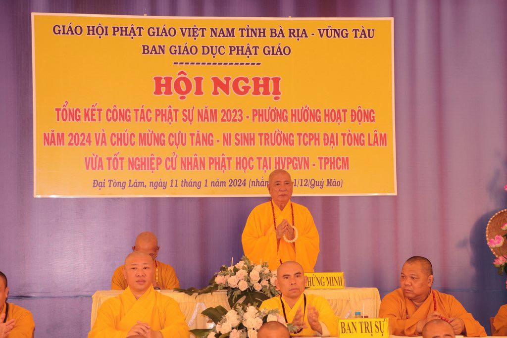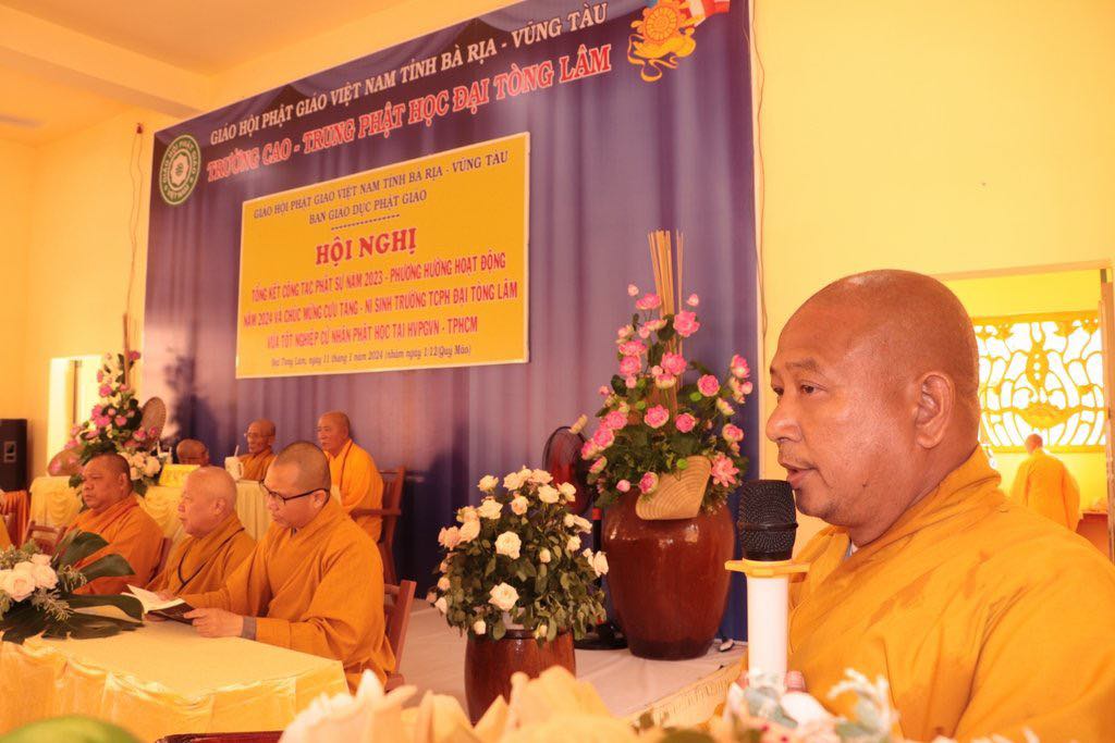 Đại đức cũng tri ân đến các thành viên trong Ban, dù những năm qua do ảnh hưởng chung của đất nước mà gặp nhiều khó khăn trong việc quản lý bổn tự nhưng vẫn luôn đồng hành cùng Ban và trường Phật học duy trì sự tồn tại và phát triển để đào tạo nên những Tăng Ni có kiến thức cơ bản về Phật học ngõ hầu sau này hướng dẫn Phật tử đúng chánh pháp của đức Như Lai.