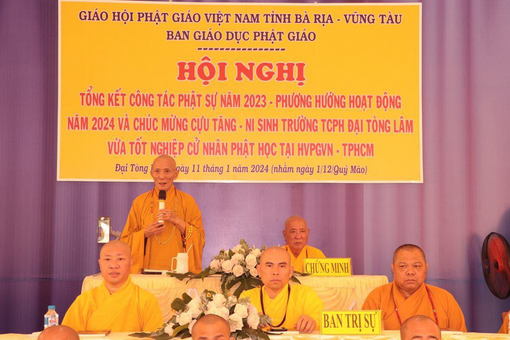 Sau nghi thức niệm Phật cầu gia bị, Đại đức Thích Nhuận Chính, Trưởng ban Giáo dục Phật giáo tỉnh đã có lời phát biểu khai mạc. Trong lời phát biểu Đại đức đã bày tỏ sự biết ơn sâu sắc đến Chư tôn đức trong thường trực BTS tỉnh và cá nhân hoà thượng viện chủ Tổ đình Đại Tòng Lâm đã tạo mọi điều kiện tốt nhất cho hoạt động Giáo dục Phật giáo được duy trì và ngày càng phát triển.