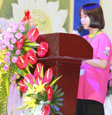 Nói về quá trình học tập tại chùa Phật Quang, em Trần Ngọc Hà Phương đã thay mặt cho 460 bạn học sinh nói lên cảm tưởng của mình. Lời đầu tiên em thay mặt cho các bạn gửi lời tri ân đến Thượng tọa Trụ trì, em nói: “vì tình thương đối với thế hệ trẻ, Sư phụ đã tổ chức một môi trường sinh hoạt lành mạnh cho chúng con trong dịp hè này. Đến với khóa hè chùa Phật Quang, tuy chỉ bốn tuần lễ tu học thôi, nhưng chúng con đã thay đổi quá nhiều. Những ngày đầu xa nhà chúng con ai cũng nhớ ba mẹ nhiều lắm, nhưng chính nơi đây đã cho con cảm giác chùa là nhà, dạy cho chúng con những điều hay, lẽ phải, những đạo lí sâu sắc có thể ứng dụng trong đời sống.