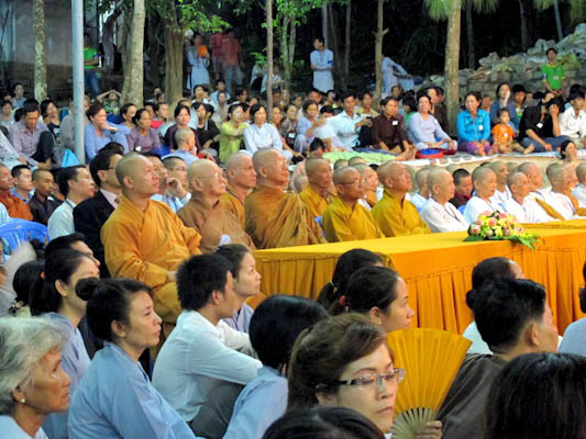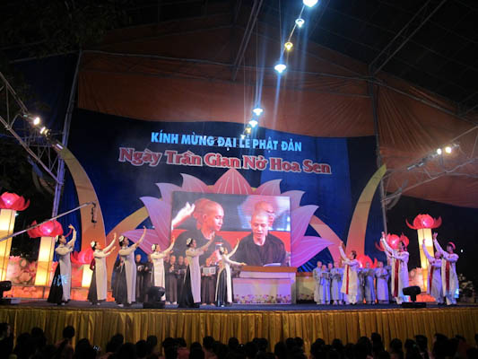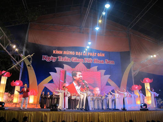 Sự tĩnh lặng của ngôi chùa cùng khung cảnh yên tĩnh của núi rừng hằng ngày giờ đây đã biến mất, không khí trước Lễ đài Phật Đản sôi động và náo nhiệt hẳn lên với sự tham dự của gần 2 vạn người đang có mặt. Tất cả cùng hướng về sân khấu, để lắng nghe những ca khúc Phật giáo dễ đi vào lòng người, gây được ấn tượng bởi những ý nghĩa sâu sa của nghệ thuật và của đạo lý mà người sáng tác và người biểu diễn muốn truyền tải đến thính giả. Họ muốn mang âm nhạc để tạo ra nhịp đập trái tim của mọi người hướng về Đức Phật với lòng tôn kính và biết ơn sâu sắc nhất.