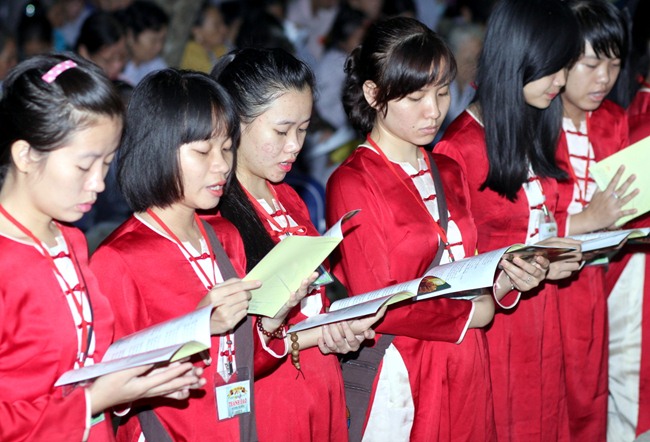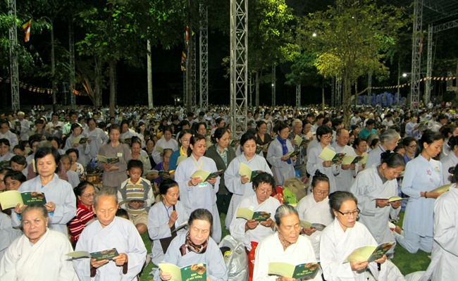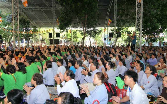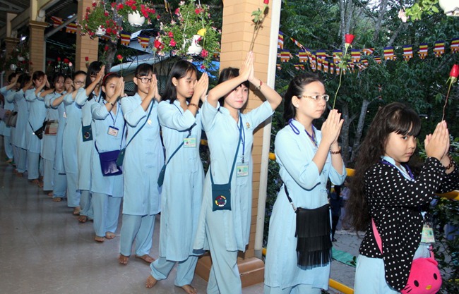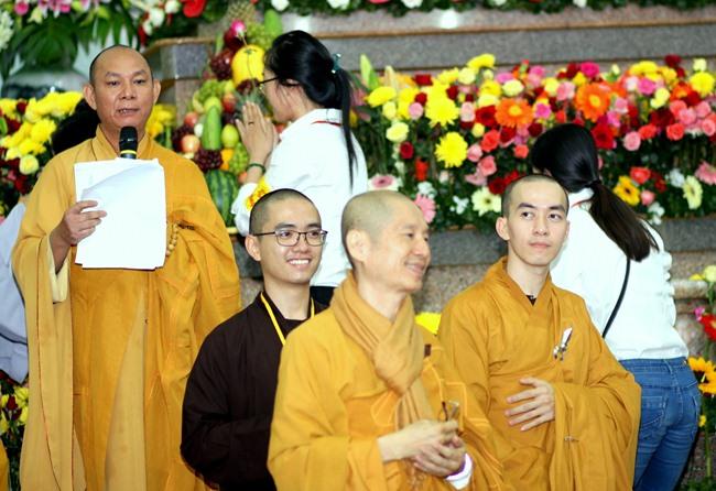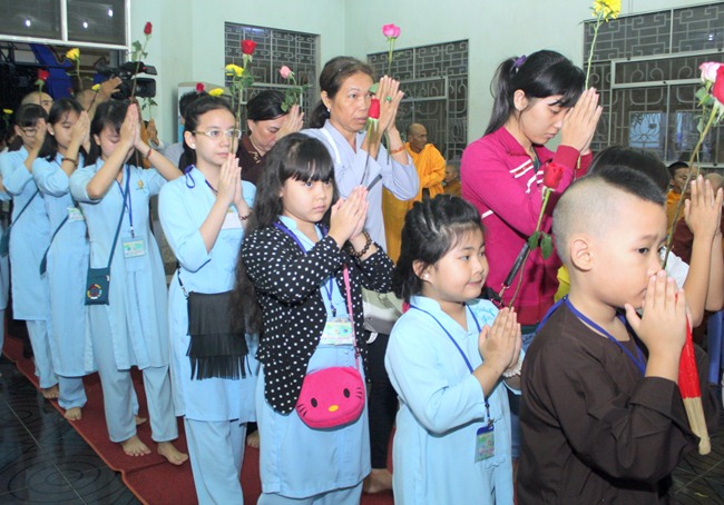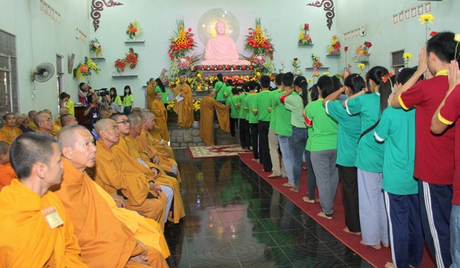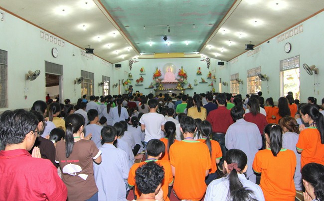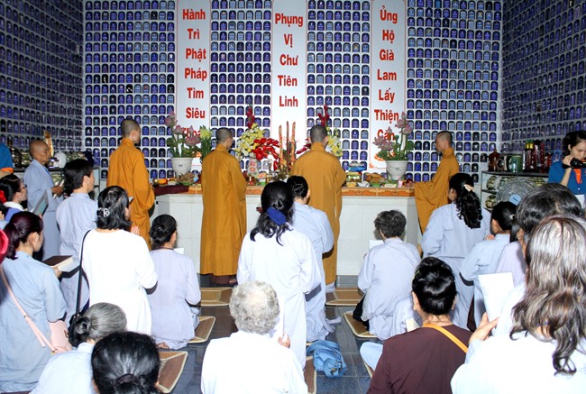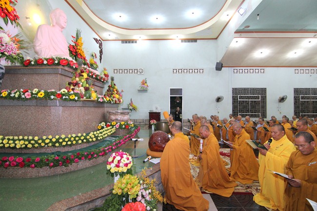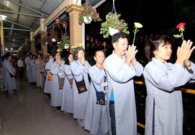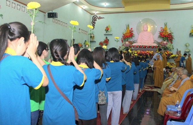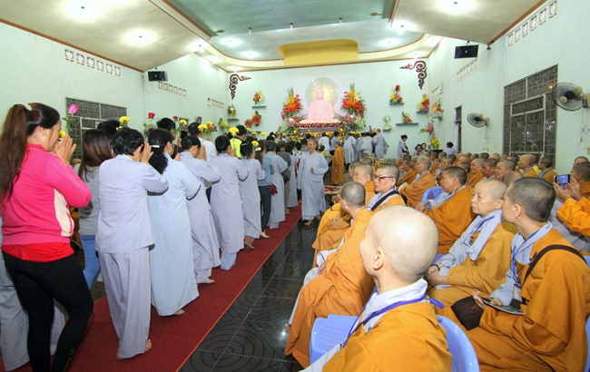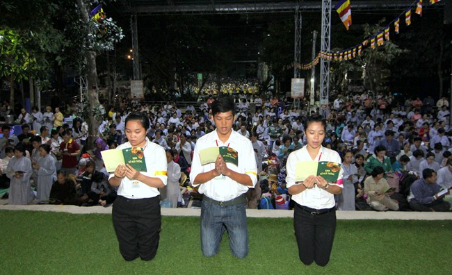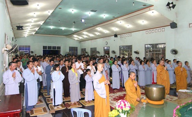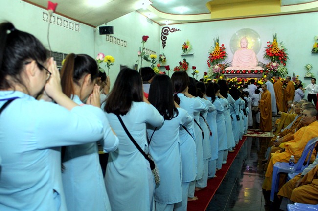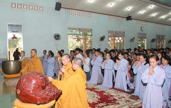 Đúng 9h00” sáng ngày mùng 07, quý Thầy tại Bổn tự hướng dẫn Phật tử tụng kinh Từ bi sám hối và kinh Bát Chánh Đạo. Kế đến, thiết Lễ cầu siêu, cúng thí thực và ĐĐ Thích Tánh Khoang – Phó trụ trì Thiền Tôn Phật Quang thay mặt Thầy Bổn sư truyền Tam quy – Ngũ giới và Bảy điều nguyện cho gần 800 thiện nam tín nữ phát tâm Quy y Tam bảo chính thức trở thành người Phật tử.