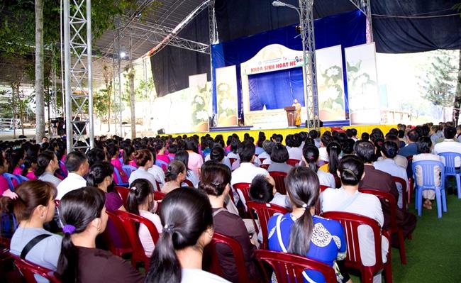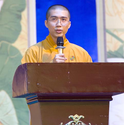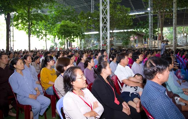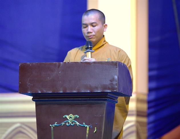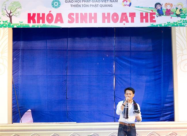 Tiếp đến, Thượng tọa Trụ trì thể hiện sự vui mừng của mình khi thấy các em học sinh biết nghe lời bố mẹ, lên chùa tham dự khóa tu mùa hè. Người khẳng định, trên đời có 2 hạng người: một là hạng người làm buồn lòng những người xung quanh; hai là hạng người làm vui lòng những người xung quanh.