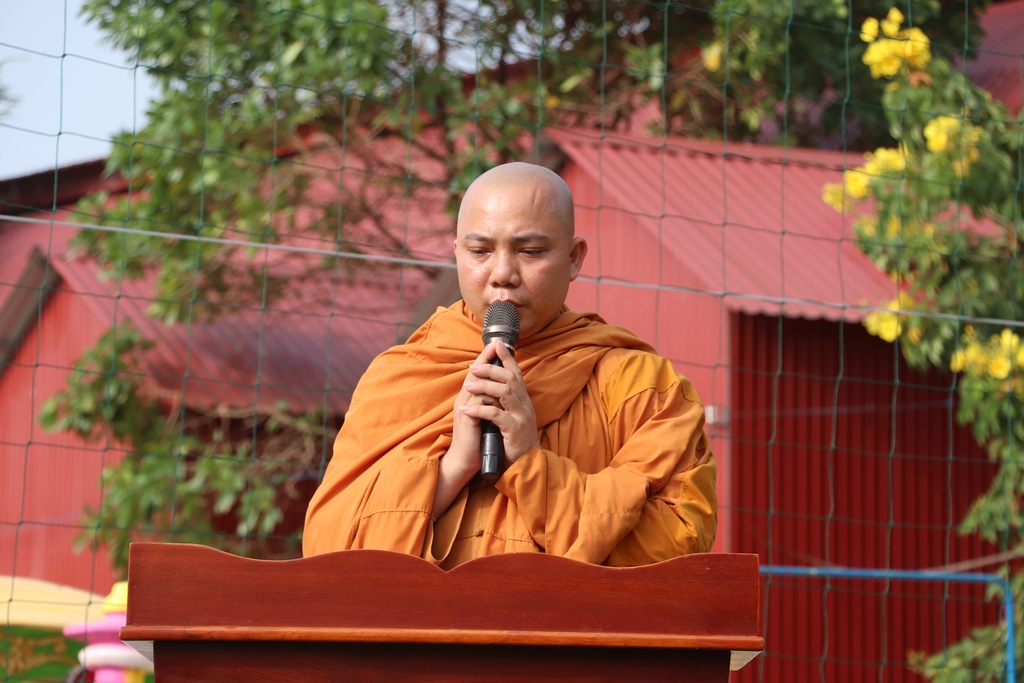 Chính vì vậy, sân chơi để các cháu rèn luyện sau những giờ học tập – chấp tác – công phu là niềm ao ước của đại đức khi mới bắt đầu đến với những mãnh đời cơ nhở. Được Bộ CHQS tỉnh và BTS tỉnh chiếu cố, Đại đức đã xin chân tình tri ân và hứa sẽ sử dụng – bảo quản thật tốt. Thay mặt BTS GHPGVN tỉnh, TT. Thích Nhuận Nghĩa đã có bài phát biểu ngắn. Thượng toạ tri ân BỘ CHQS tỉnh luôn đồng hành cùng Phật giáo tỉnh nhà trong mọi hoạt động Phật sự để cùng nhau chung tay giữ vững an ninh chính trị và an sinh xã hội. Trên địa bàn tỉnh hiện có 4 Trung tâm nuôi dưỡng các trẻ mồ côi do Phật giáo tỉnh quản lý, có 2 địa điểm có thể xây dựng trung tâm TDTT là Hồng Quang và Hộ Pháp.