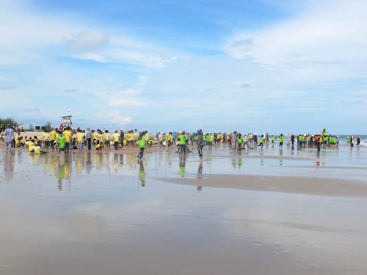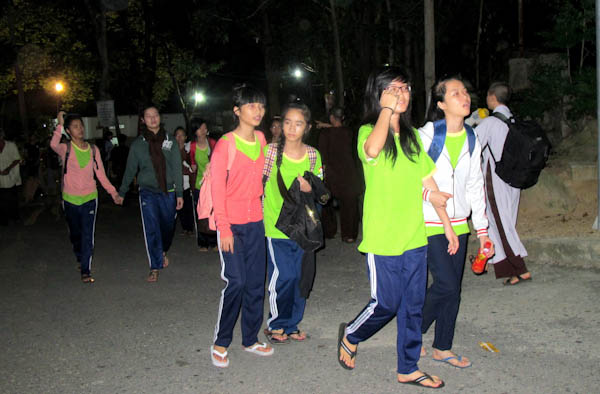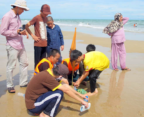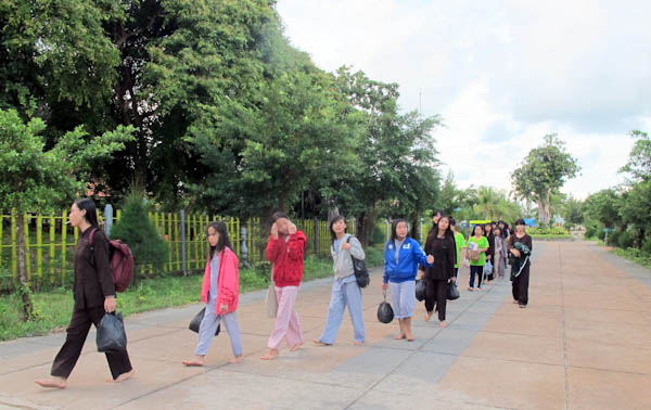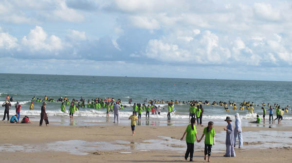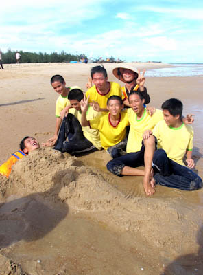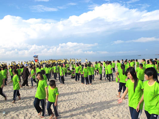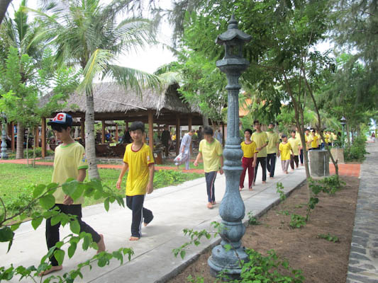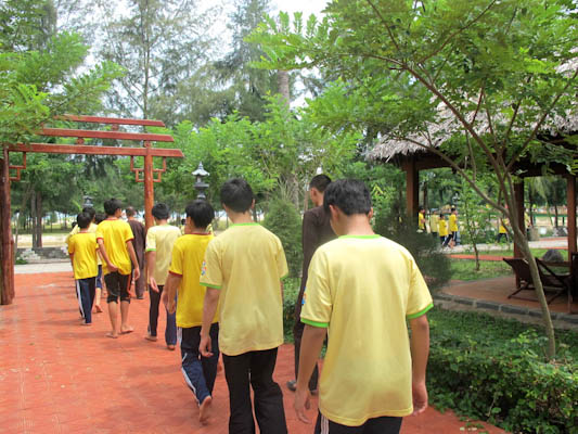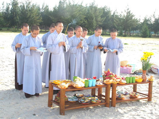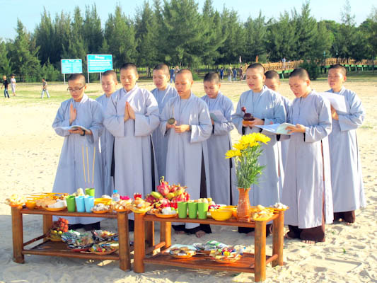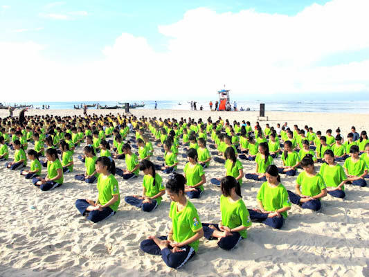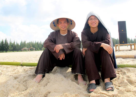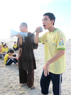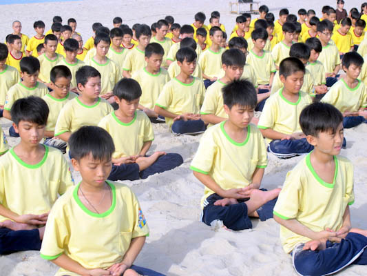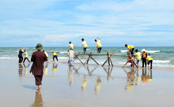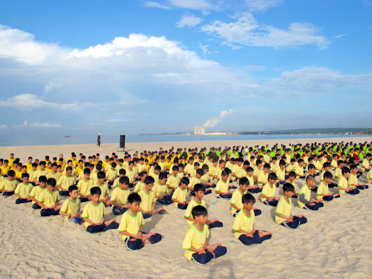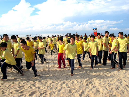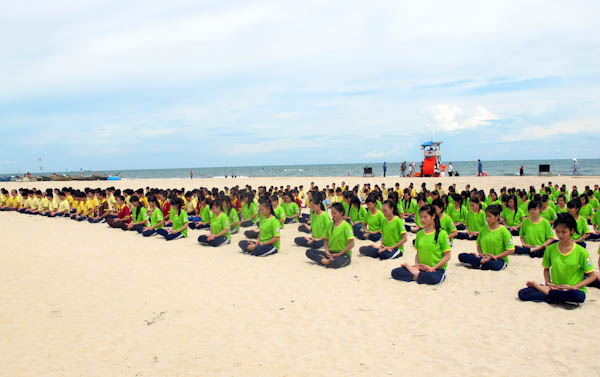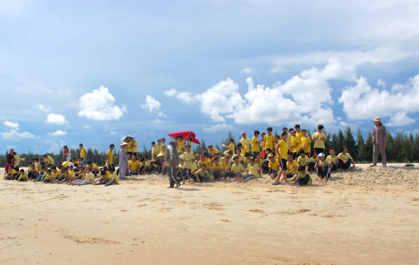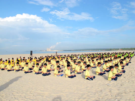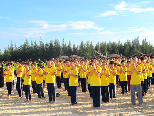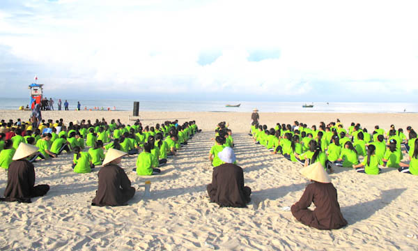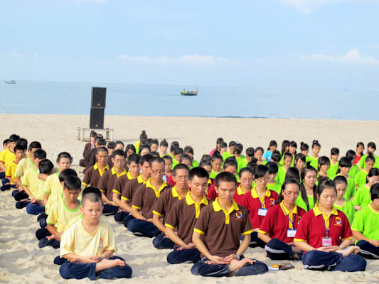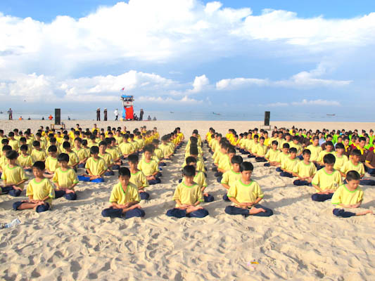 Tiếp theo, các em có những giây phút lắng đọng ngồi Thiền trên biển. Những cái bóng nhỏ ngồi im thin thít trải dài trên bãi cát, cảnh tượng ấy làm nao lòng người khi hình ảnh đó đập vào mắt mình.