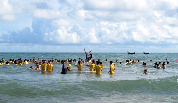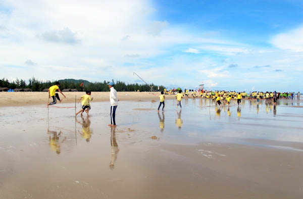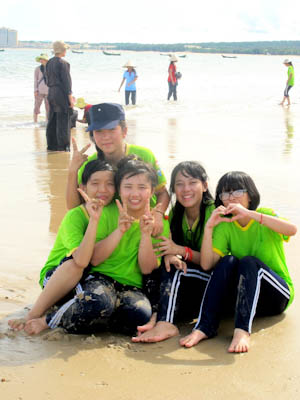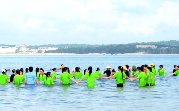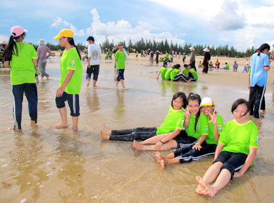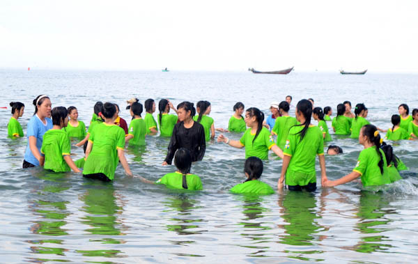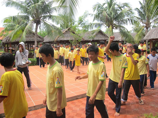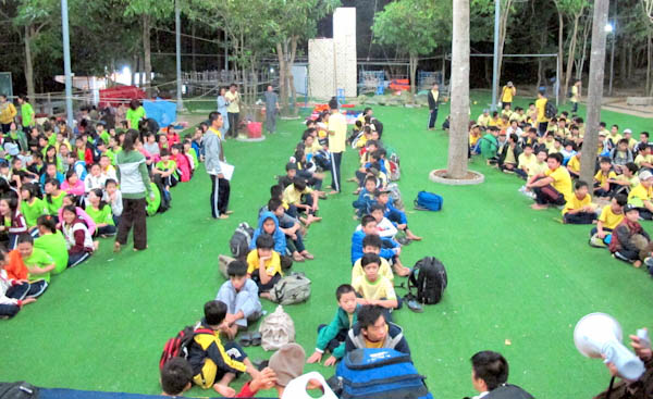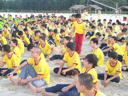 Vừa đến nơi, sau khi Ban Tổ Chức phân chia khu vực sinh hoạt của các Chánh thì các em tập trung ra bãi biển vận động và hít thở không trong lành của biển. Lúc này, tâm hồn các em được rộng mở như muôn trùng sóng vỗ. Những âm thanh của sóng, của gió làm xôn xao lòng người. Có đến nơi biển rộng trời cao dạt dào, các em mới thực sự tìm thấy mình trong sức sống mạnh mẽ với những khát khao thánh thiện của tuổi trẻ, trong một trái tim biết đồng cảm. Điều đó được biểu hiện trên nét mặt và nụ cười thân thiện của các em khi giao tiếp với nhau.