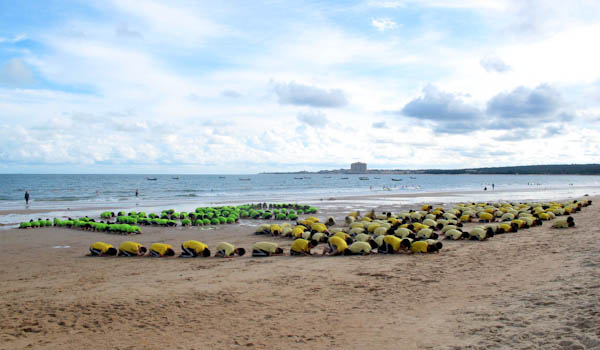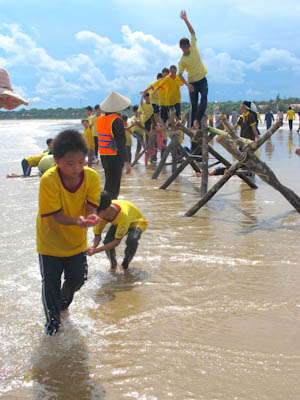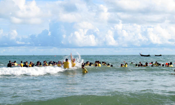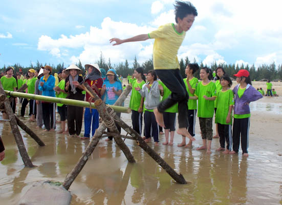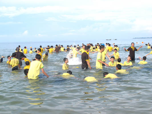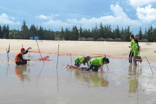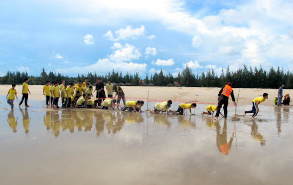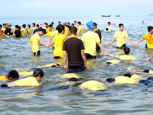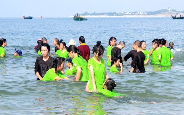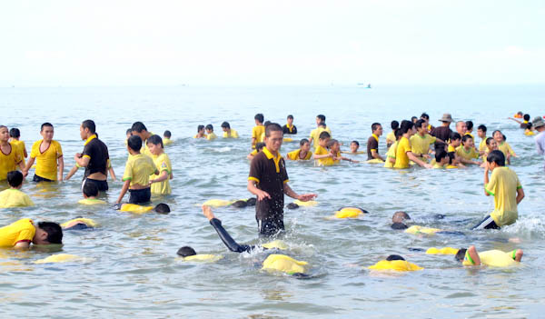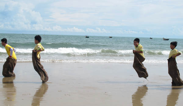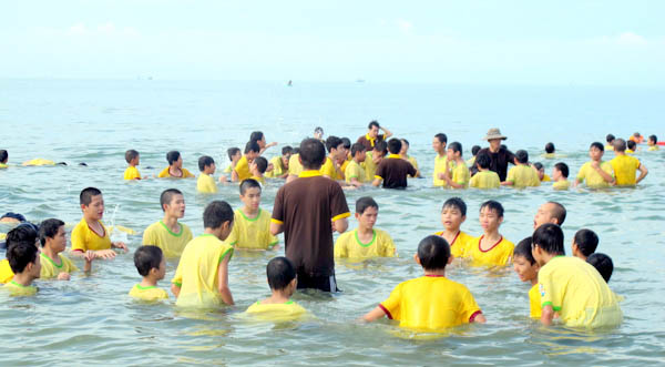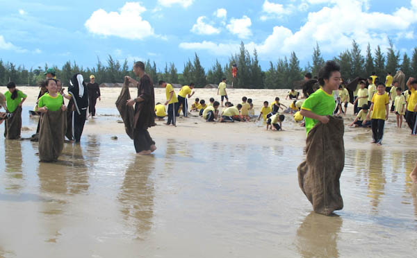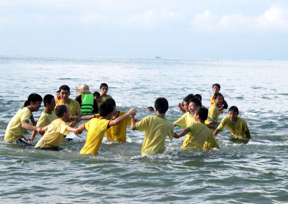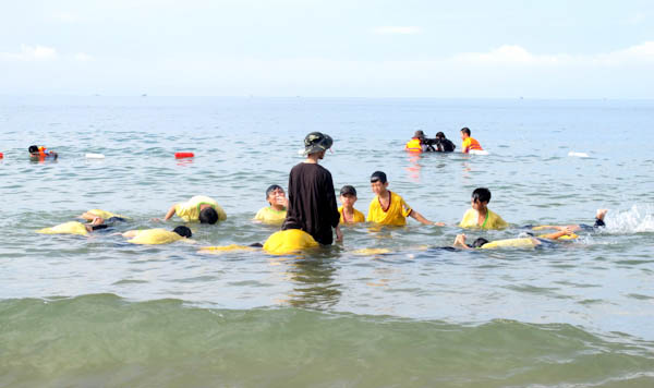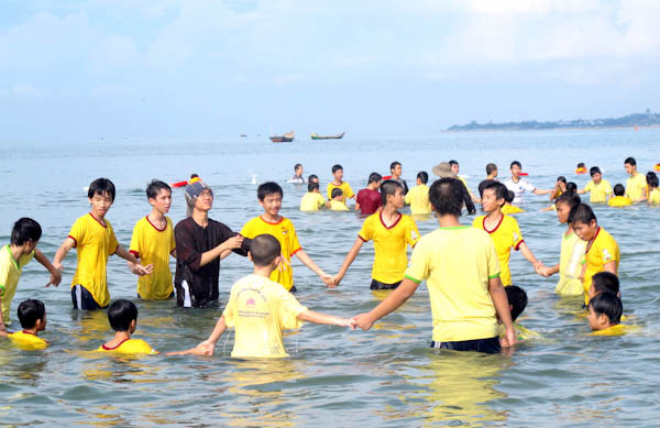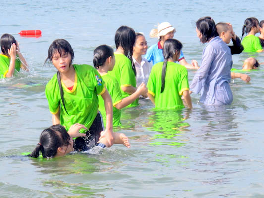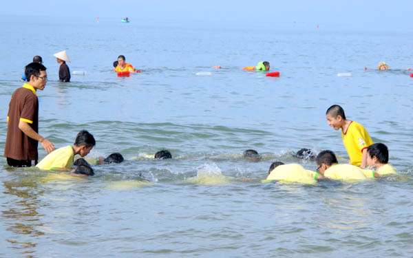 Cũng tại đây, các em được học phương pháp bơi lội bằng 5 bước thực hành dưới nước vừa đơn giản lại hiệu quả do TT.Thích Chân Quang hướng dẫn. Ngoài ra, các em còn tham gia trò chơi xếp đội hình, tham gia cuộc thi các trò chơi tập thể, liên hoàn, vận động trên biển, bằng cách vận dụng kỹ năng trườn, bò trên cát, chạy thẳng, nhảy cao, nhảy bao bố, dò dẫm qua cầu khỉ, lấy nước biển đổ đầy chai.
